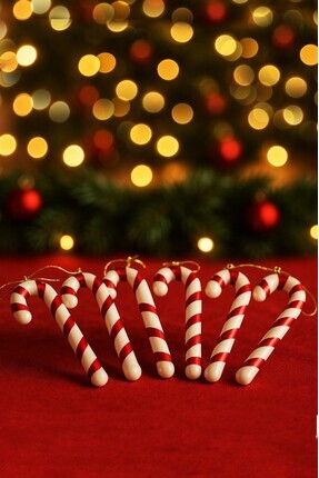 Parti Dükkanım Şeker - Top ve Baston Simli Çizgili Yılbaşı Ağacı Süsü Seti 14 Parça