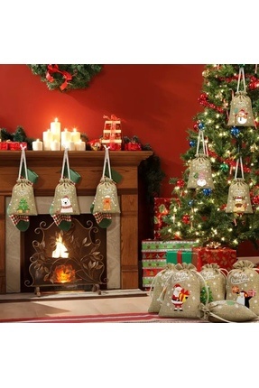 Huzur Party Store 45 cm Noel Baba Figürü Geyik Desenli Kıyafet Fener ve Hediye Çuvalı Detaylı Yılbaşı Ağacı Dekor Süsü