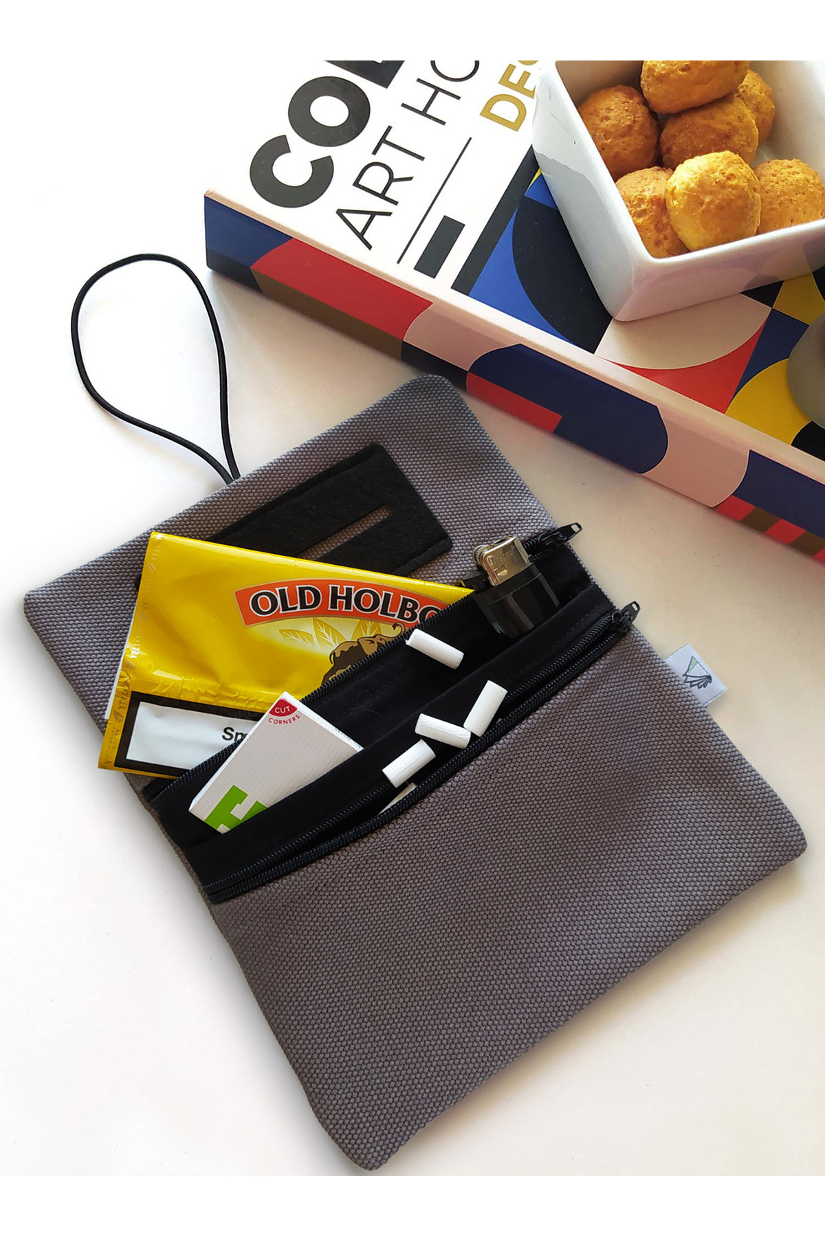 Kirpiwork Açık Gri Minimal Kanvas Tütün Çantası Özellikleri