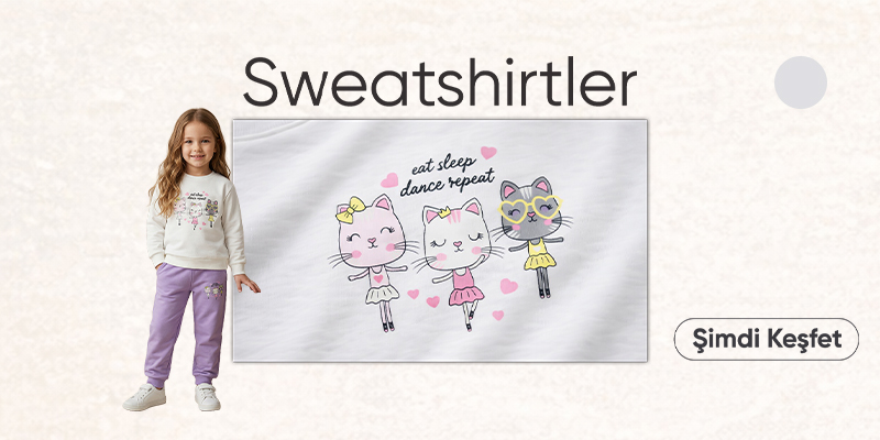 Rahatlık mı önceliğiniz? Yumuşak ve esnek kumaşlardan üretilmiş kız çocuk sweatshirtleriyle çocuklar gün boyu konfor içinde olacak. Okuldan parka, her ortamda kullanılabilecek sweatshirtler hareket özgürlüğü sunar ve şıklığıyla göz kamaştırır. Kapüşonlu veya fermuarlı modellerden dilediğinizi seçebilir, her bir ürünün özel tasarımıyla dikkat çekebilirsiniz.