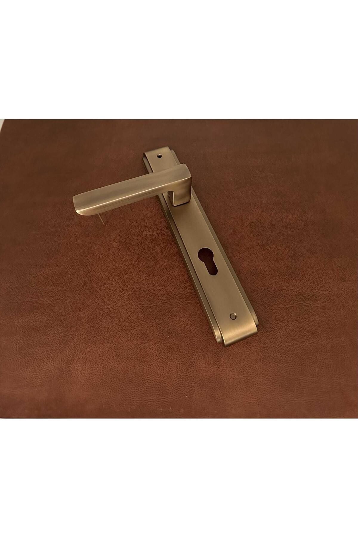 KOLDOOR Bella Antik Sarı Lüx Zamak Aynalı Yale Çelik Kapı Kolu Sol Basar Tek Yön