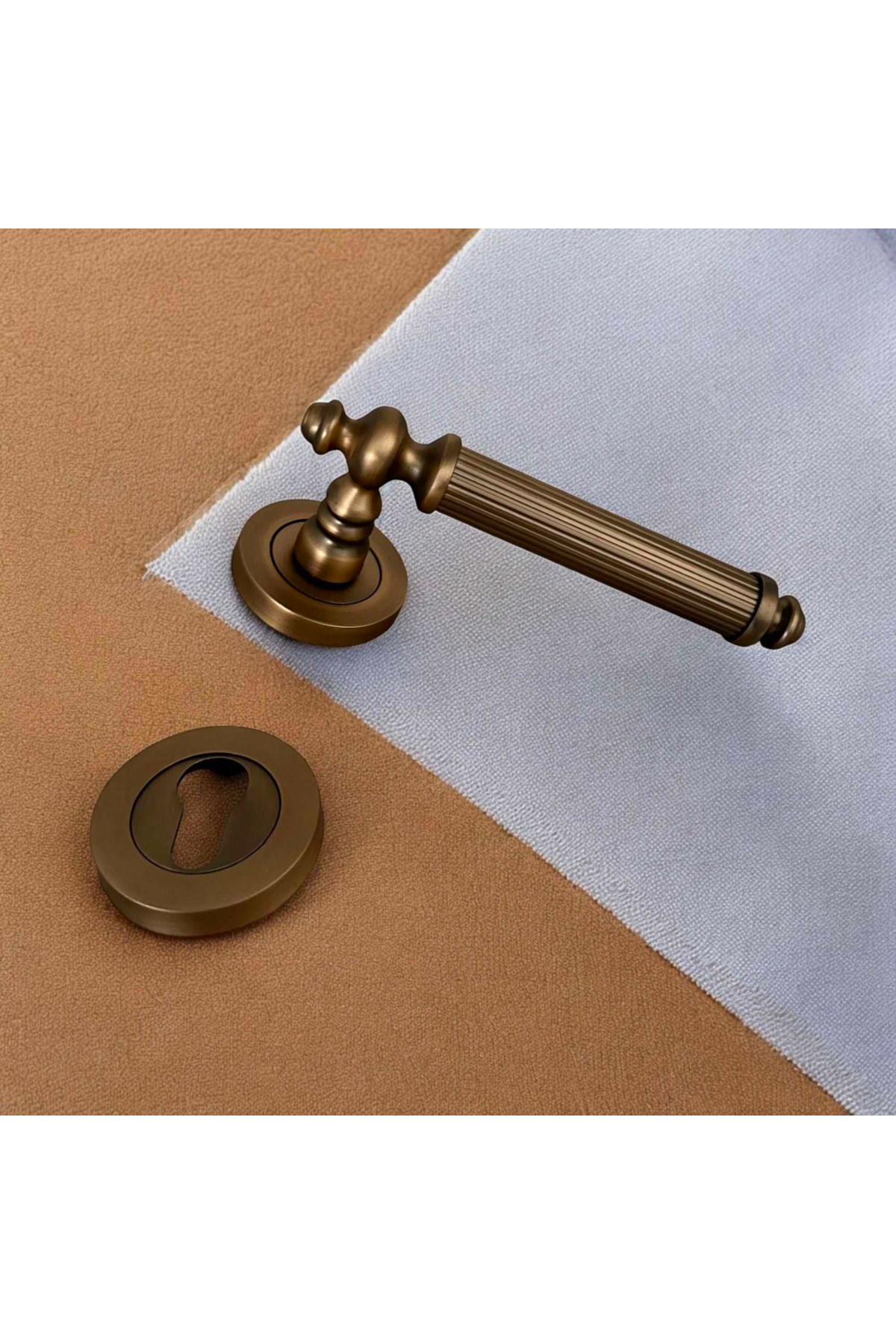 KOLDOOR Osmanlı Handles ZK37 Antik Sarı Zamak Yuvarlak Rozetli Yale Çelik Kapı Kolu Sağ Basar Tek Taraf Özellikleri
