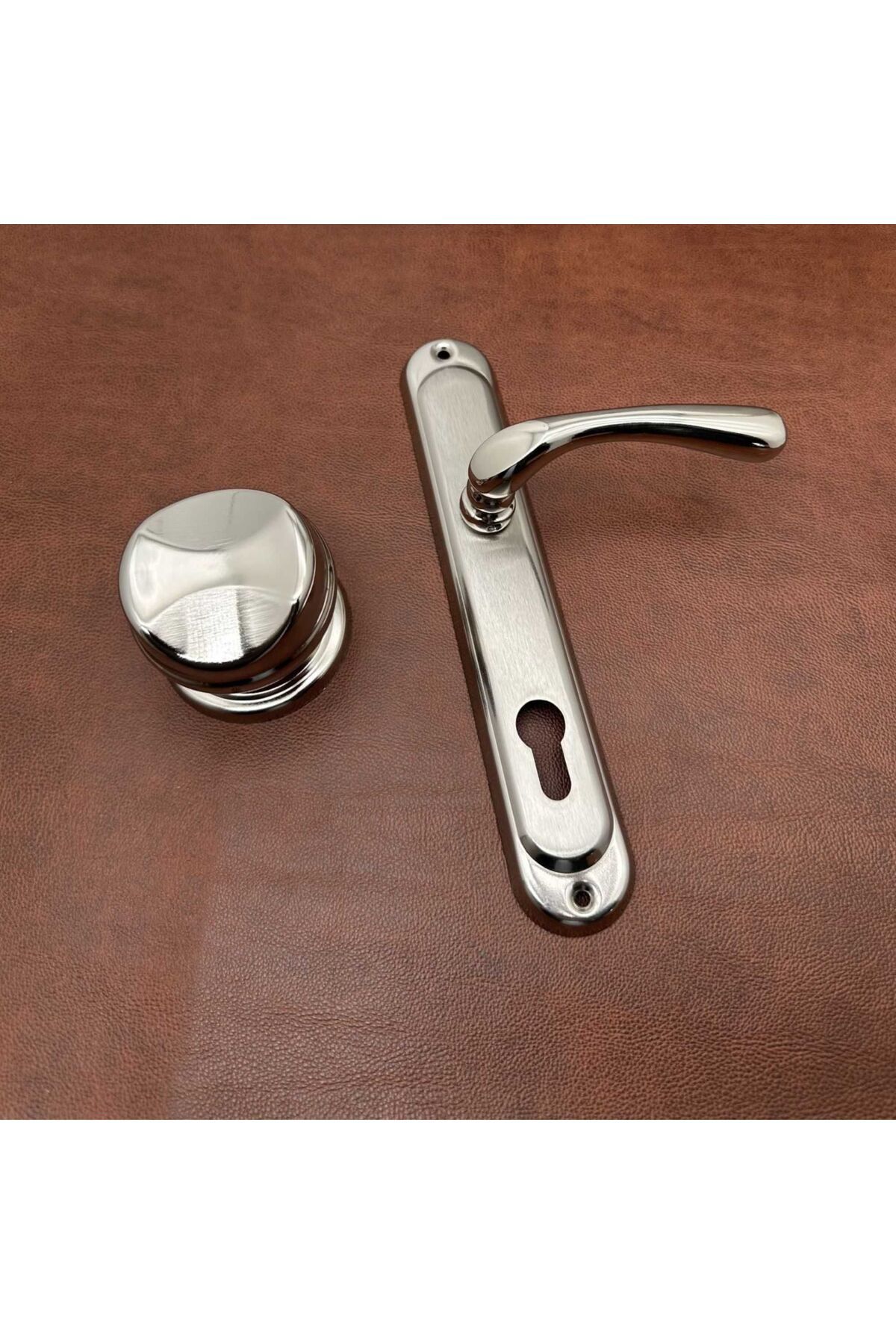 KOLDOOR Saray Kumru Aynalı Nikel Saten Yale Çelik Kapı Kolu + Kapı Babası Tokmak Sağ Basar Tek Yön