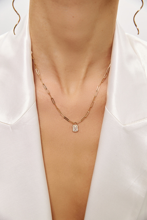 KİLİGİSTANBUL ÇELİK YEŞİL ZİRKON TAŞLI KOLYE