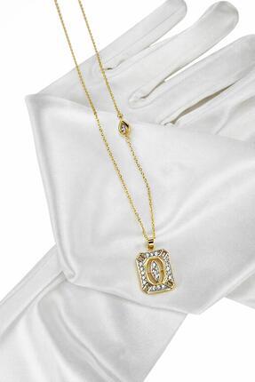 ANGELSS JEWELLERY Kadın 316l Paslanmaz Çelik Gold Renk Zirkon Taşlı Işıltılı Papatya Kolye