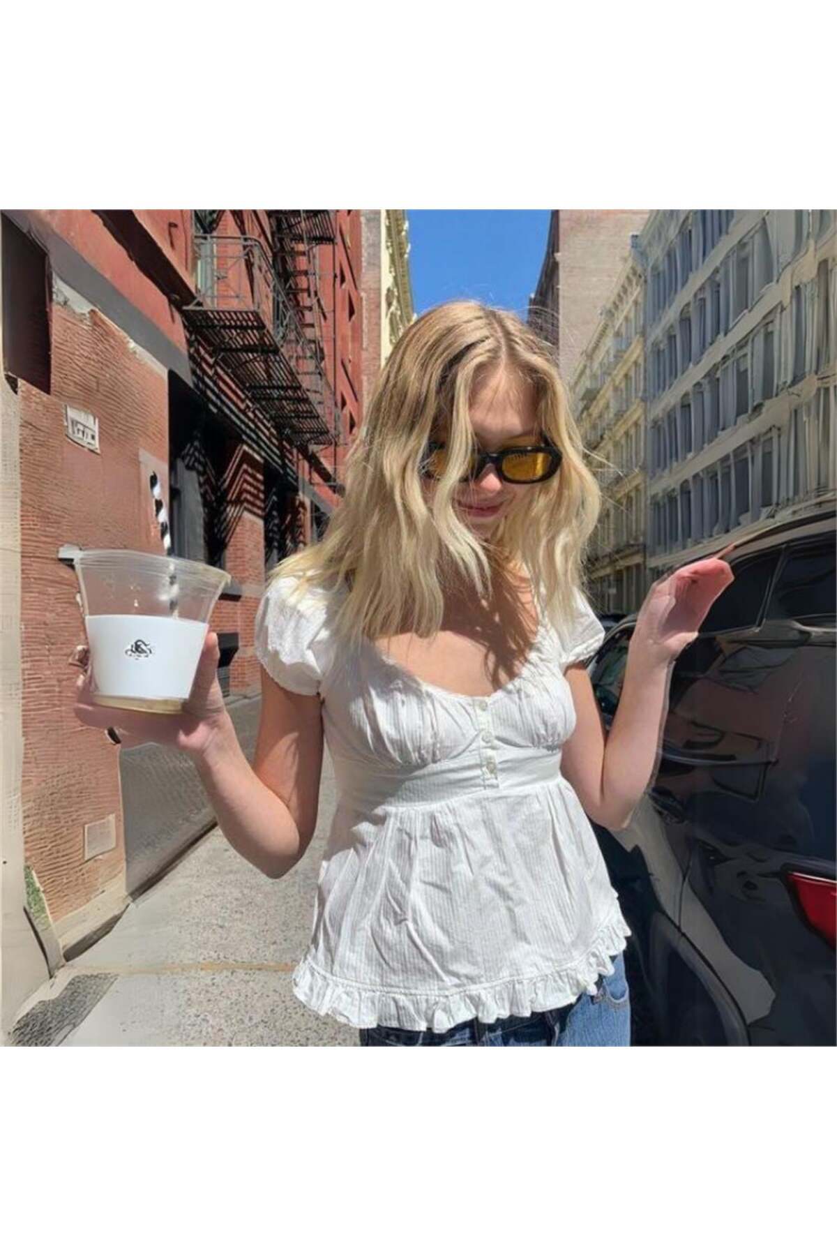 Köstebek Beyaz Basic Düğmeli Fırfırlı Bluz Özellikleri