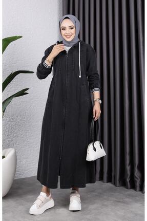 Tesettür Dünyası Kolları Çakımlı Kot Kap TSD230643 Antrasit