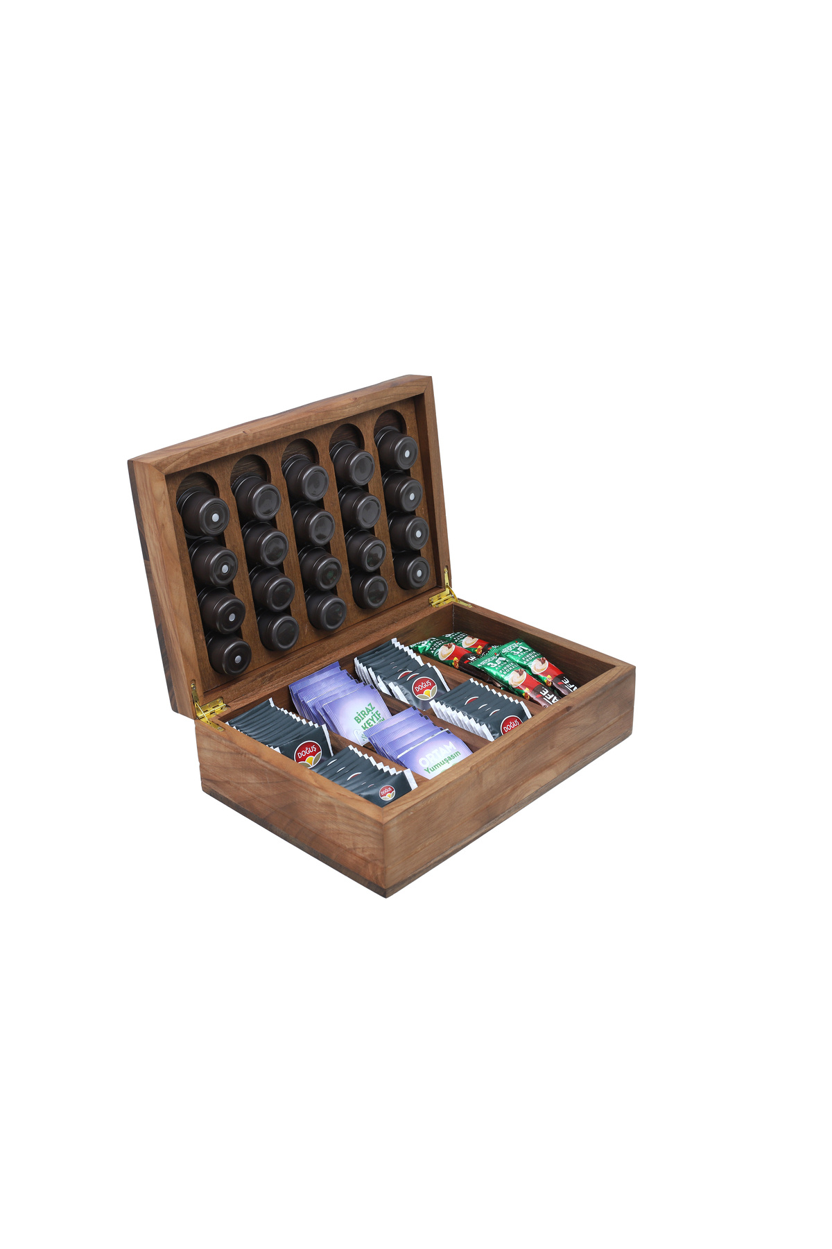 KOYMENWOODS Kapsül Kahve Standı Tchibo Uyumlu Kapsül Kahve Ve Poşet Çay Kutusu Ahşap Kahve Kutusu Ceviz