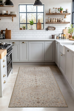 CENTER AVM Krem Halı Mutfak Halısı Makinede Yıkanabilir Halı Kaymaz Taban Halı