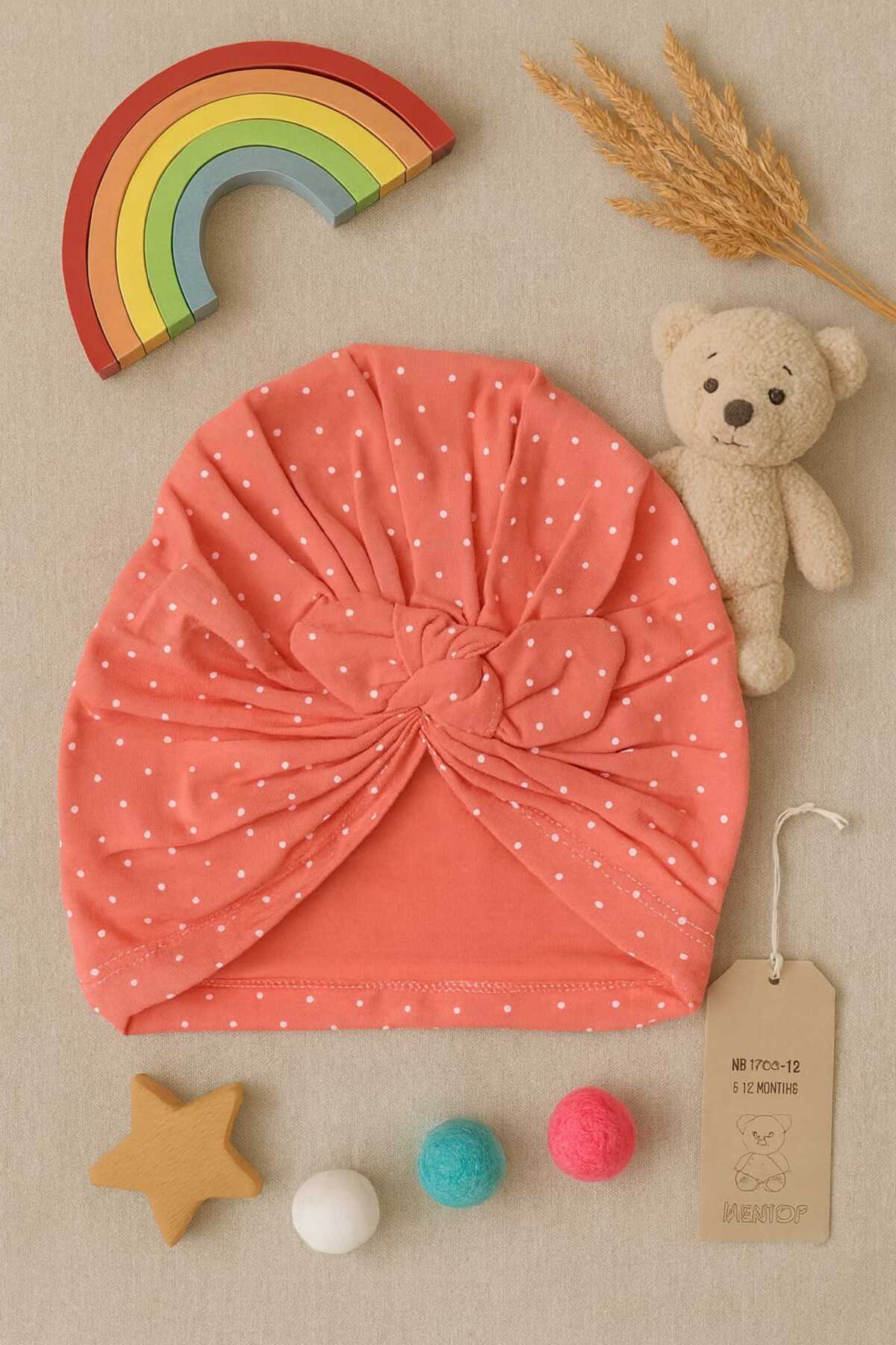 krm bebe Puantiyeli Kurdelalı Çocuk Bone