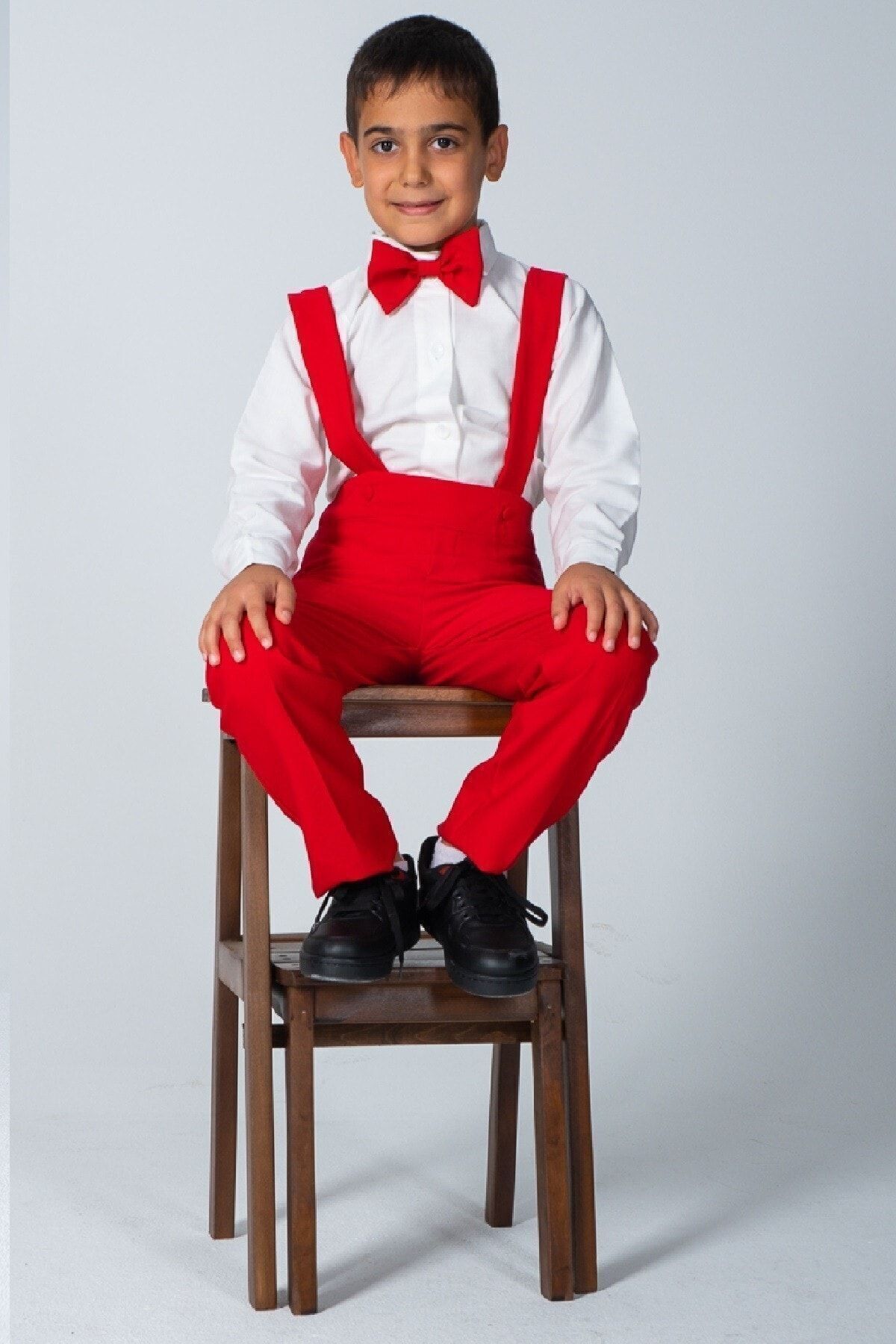 KÜÇÜĞÜM BUTİK Kırmızı Erkek Çocuk Salopet Ve Papyon Takımı(SALOPET-PAPYON) Özellikleri