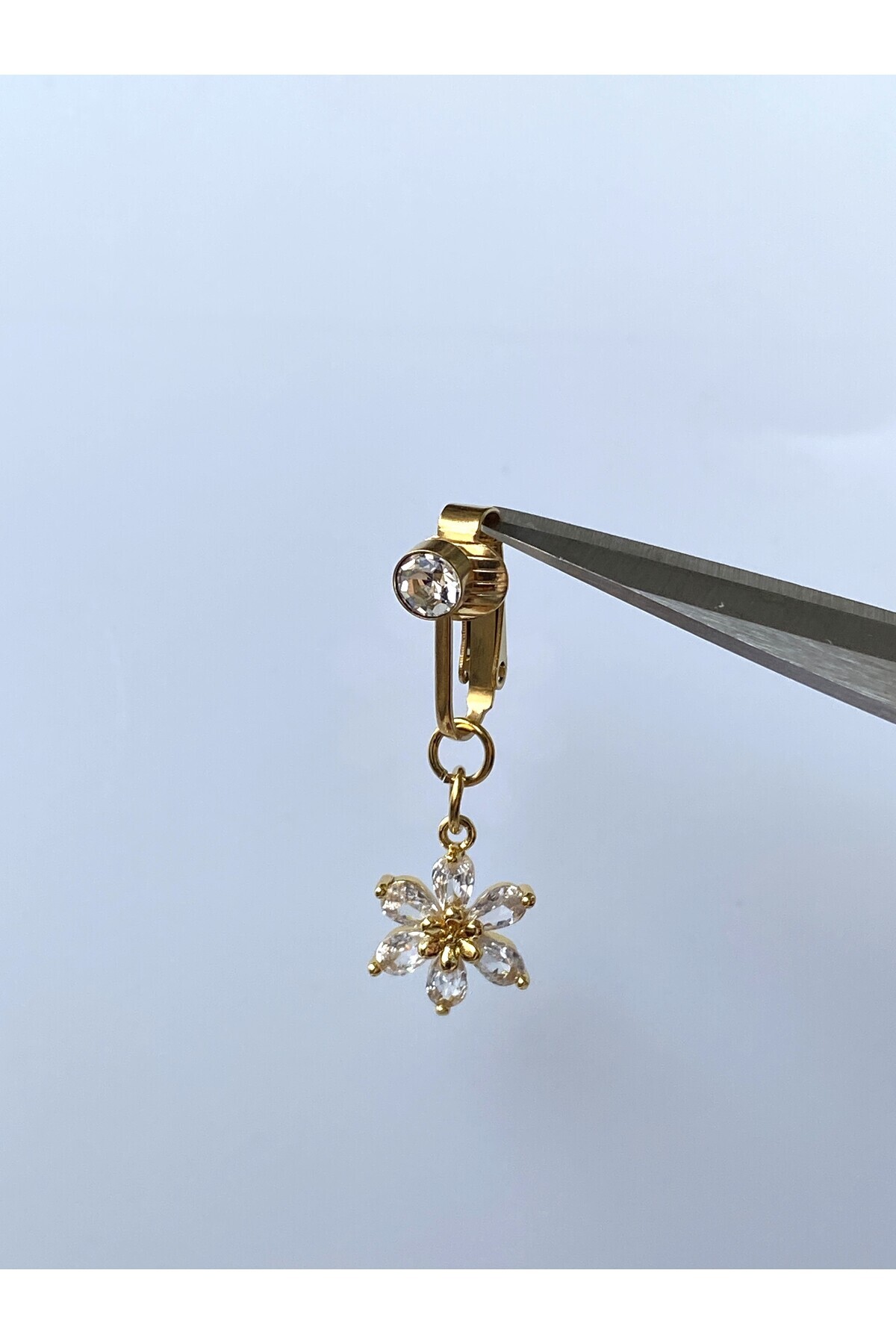 kurukafagift Çelik Göbek Piercing Çiçek Mıknatıslı Sıkıştırmalı Model