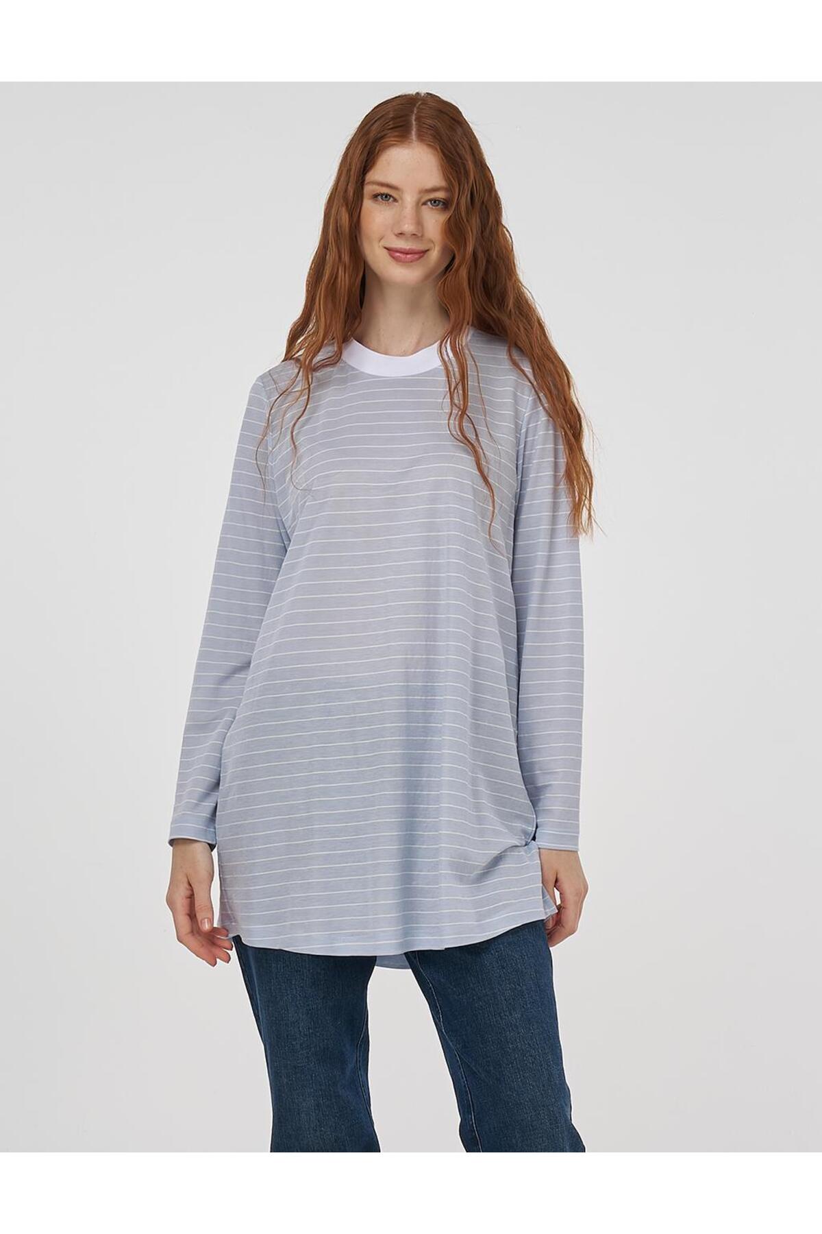 KYR Çizgi Desen Örme Sweatshirt Açık Mavi