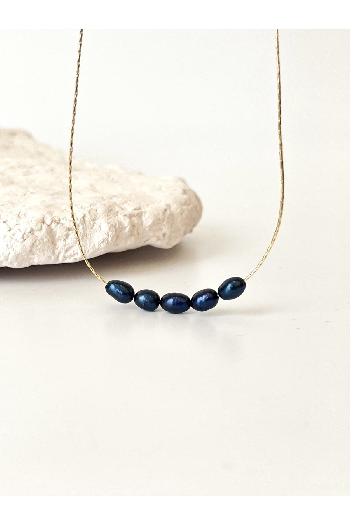 Ladies&Gentlemen 14k Altın Kaplama Minimal Siyah Inci Kolye