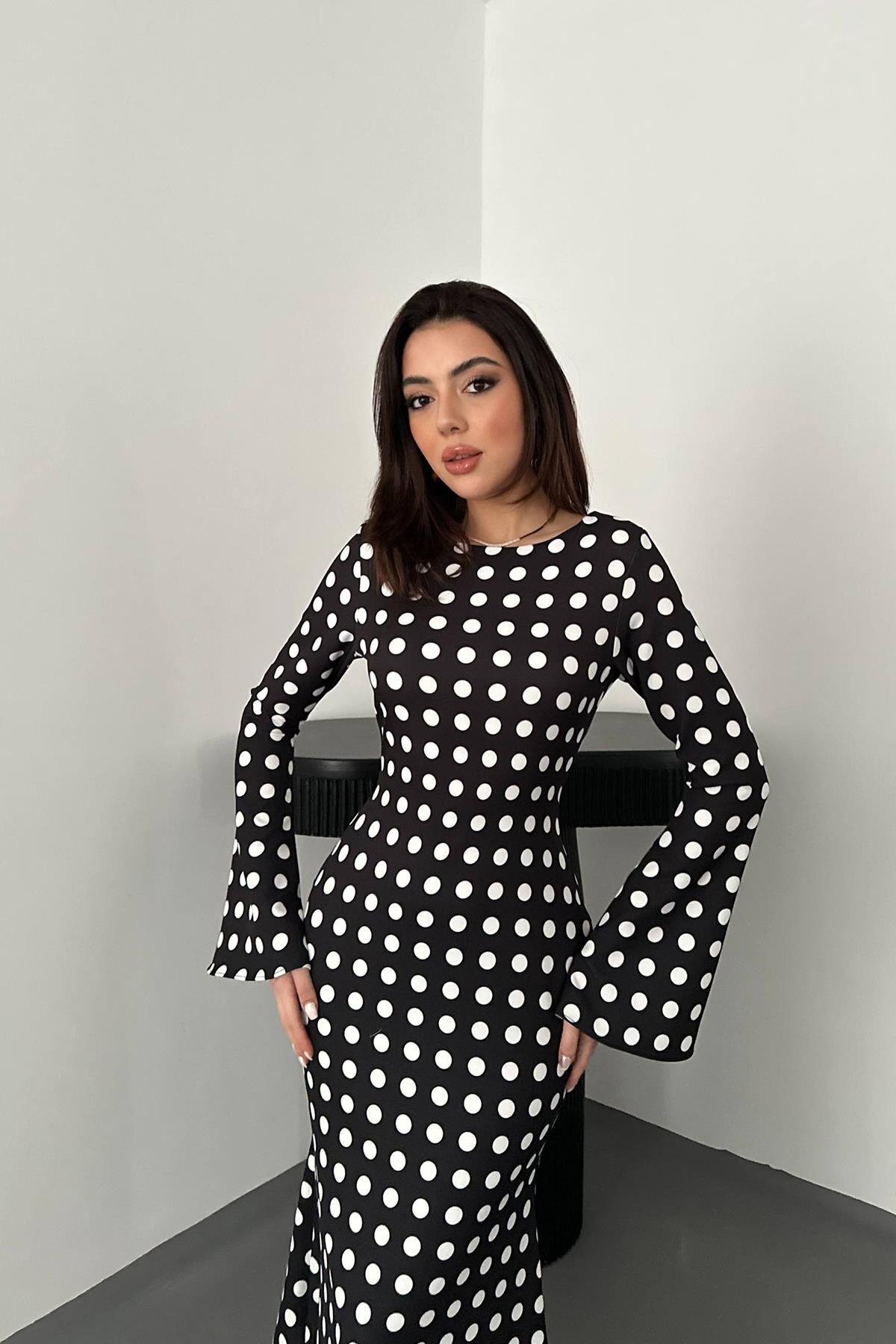 Lady Pixie Puantiyeli Vücudu Saran Maxi Elbise Özellikleri
