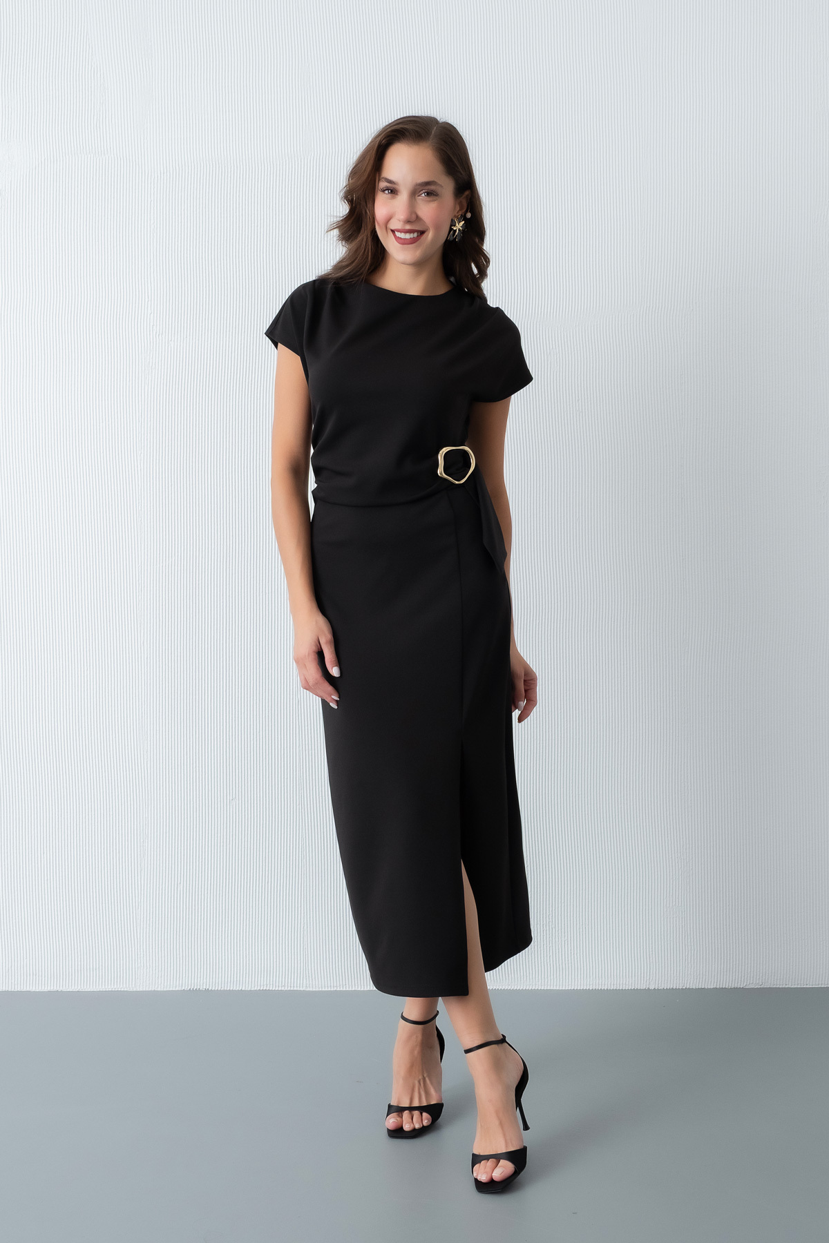 Lafaba Kadın Siyah Toka Detay Midi Davet Elbisesi Özellikleri