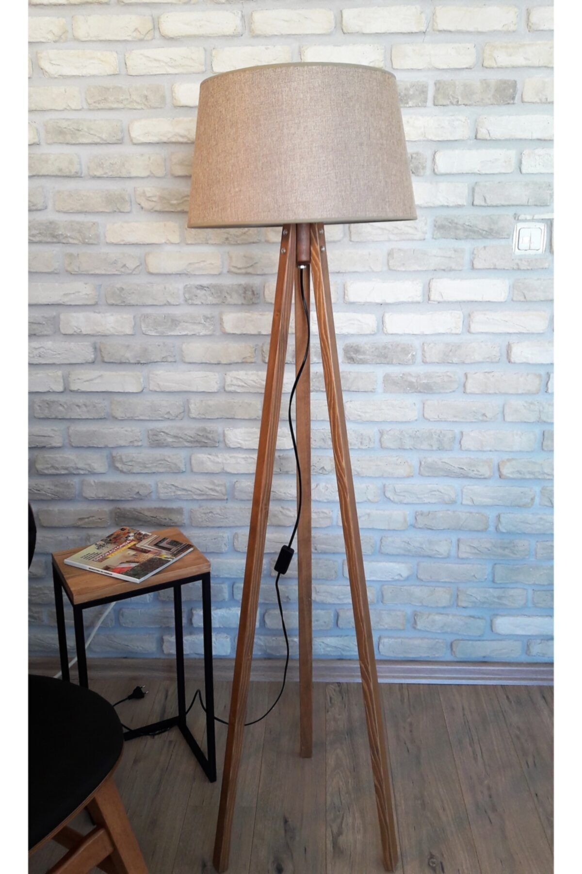 Lambada Ahşap Düğme Aks. 3 Ayakli Lambader, Bej Keten Şapka/ Açik Ceviz Ayak Özellikleri