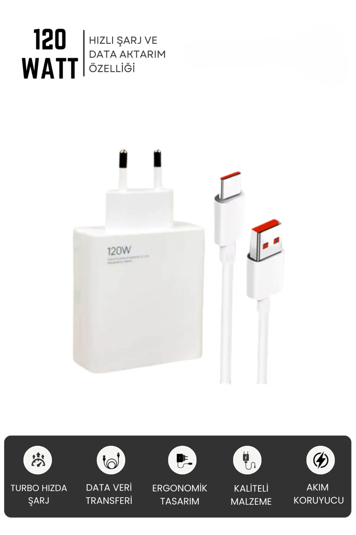 LaraThec 120 Watt Turbo Şarj Aleti Kablo Seti – Xiaomi POCO Uyumlu Type-C Android Şarj