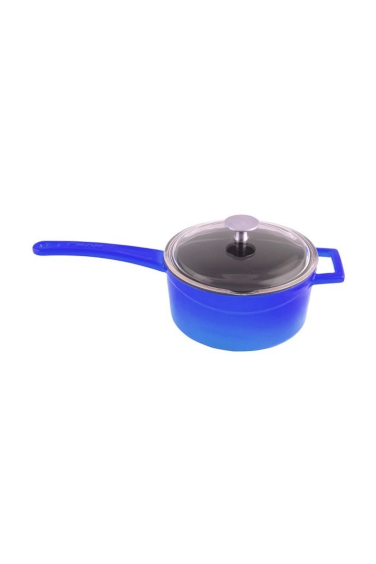 Lava Döküm Yuvarlak Saplı Tencere Çap 16 (sütlük) Mavi Cam Kapak