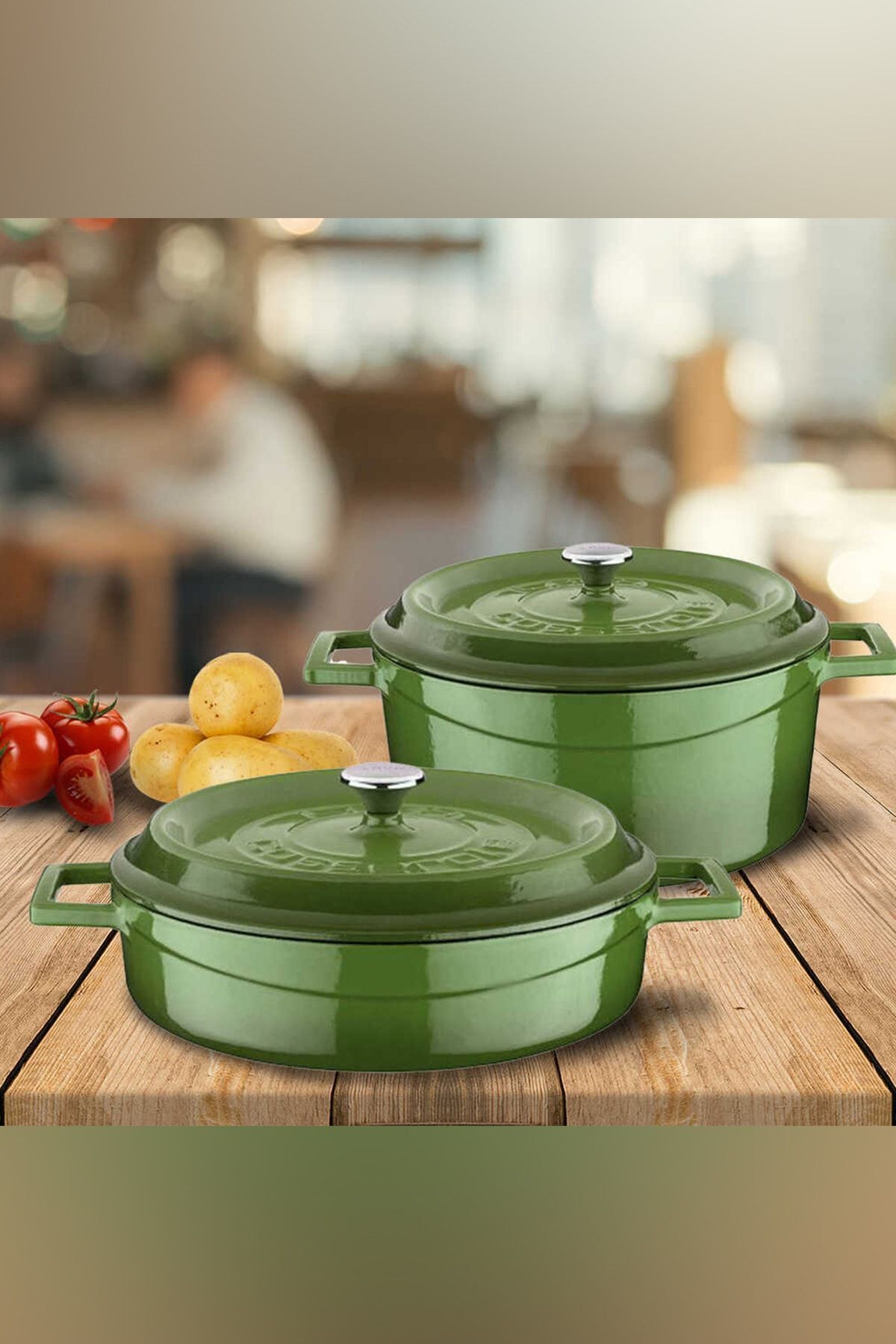 Lava Yuvarlak 28cm Sığ 2li Demir Döküm Tencere Seti Yeşil