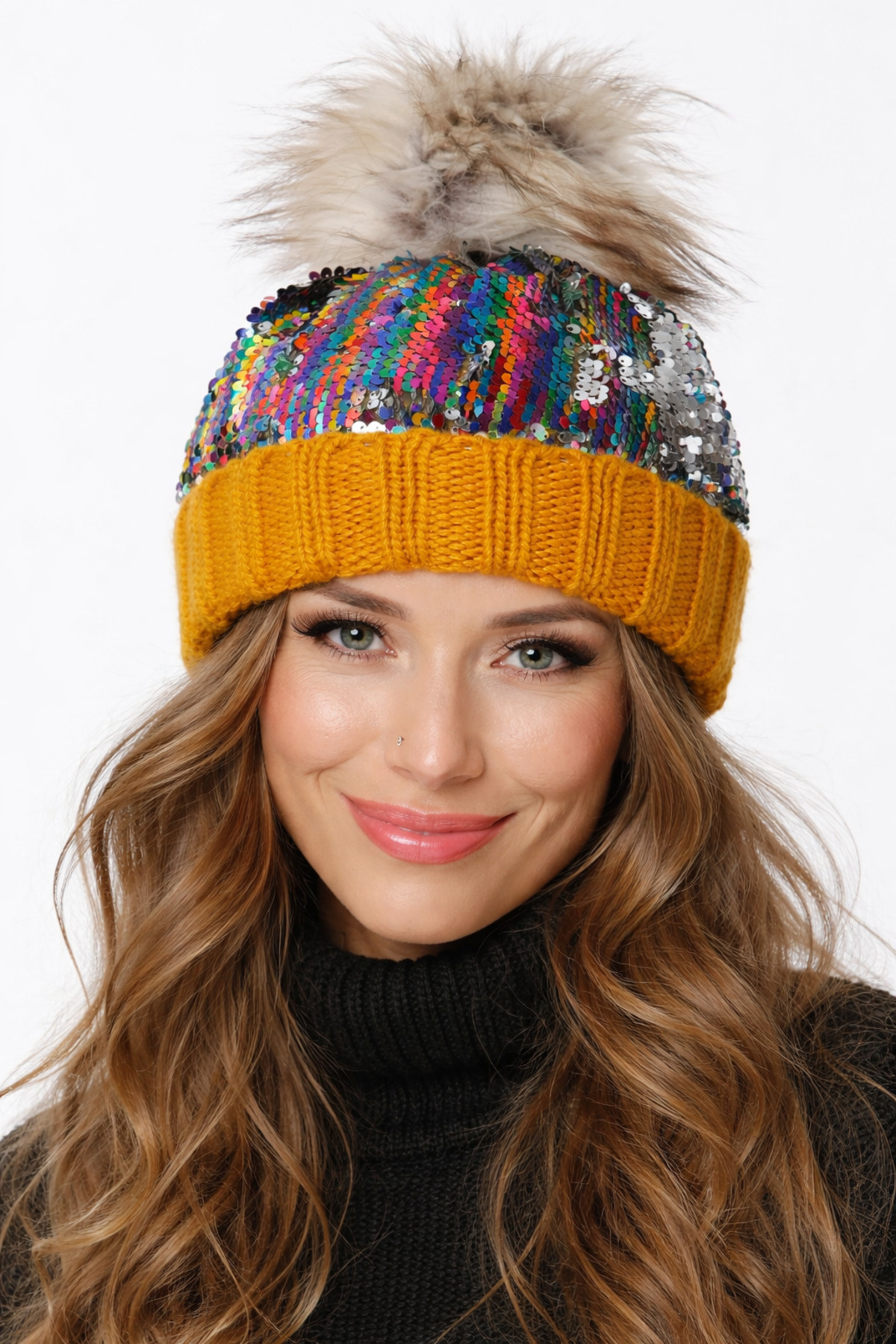 laviyonsa Pullu ve payetli çift katlı örme bere