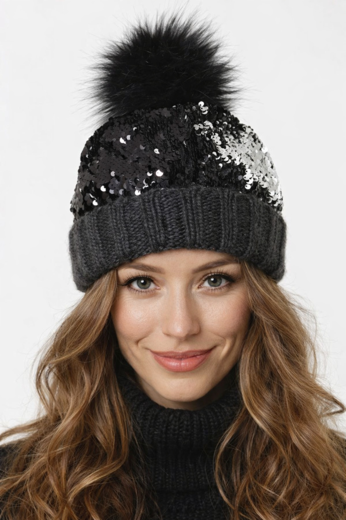 laviyonsa Pullu ve payetli çift katlı örme bere