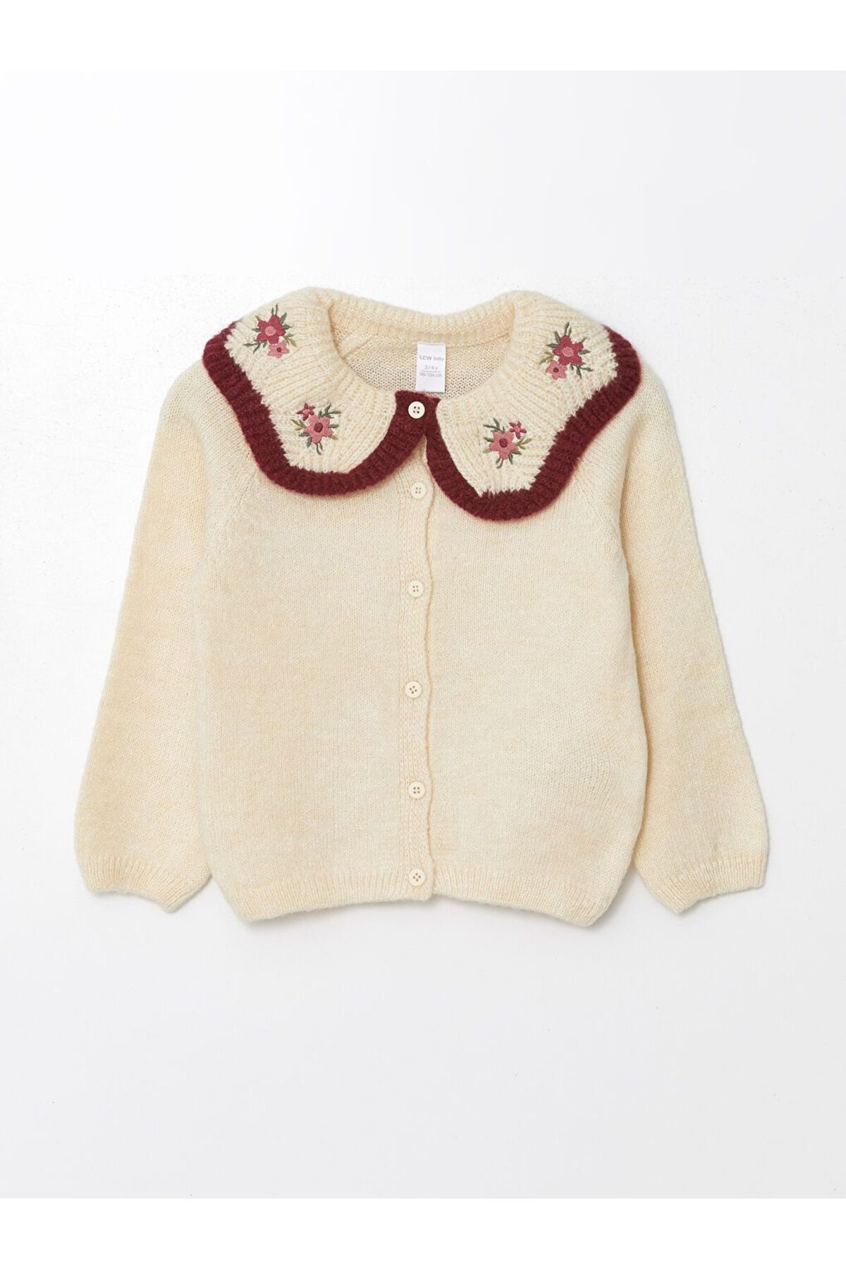 LC Waikiki Bebe Yaka Uzun Kollu Nakışlı Kız Çocuk Hırka