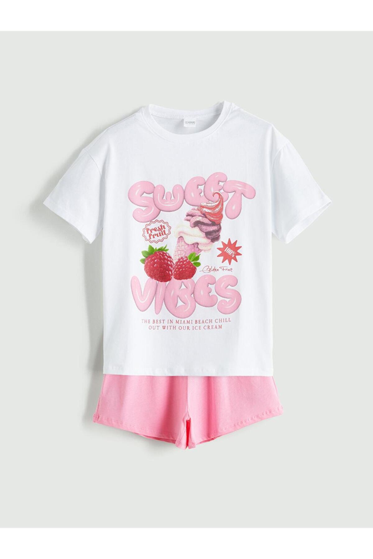 LC Waikiki Bisiklet Yaka Kız Çocuk Şortlu Pijama Takımı (S5)