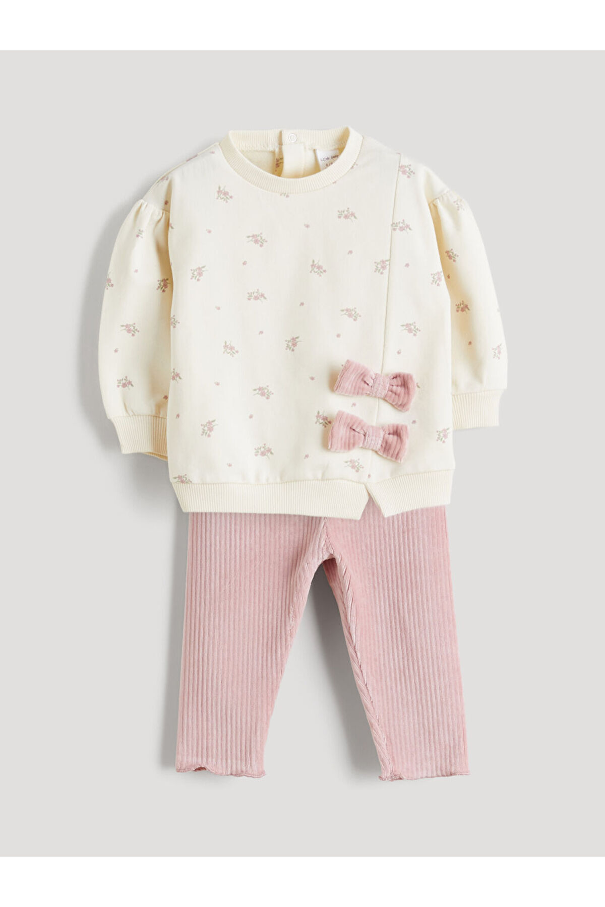 LC Waikiki Çiçekli Kız Bebek Sweatshirt ve Tayt