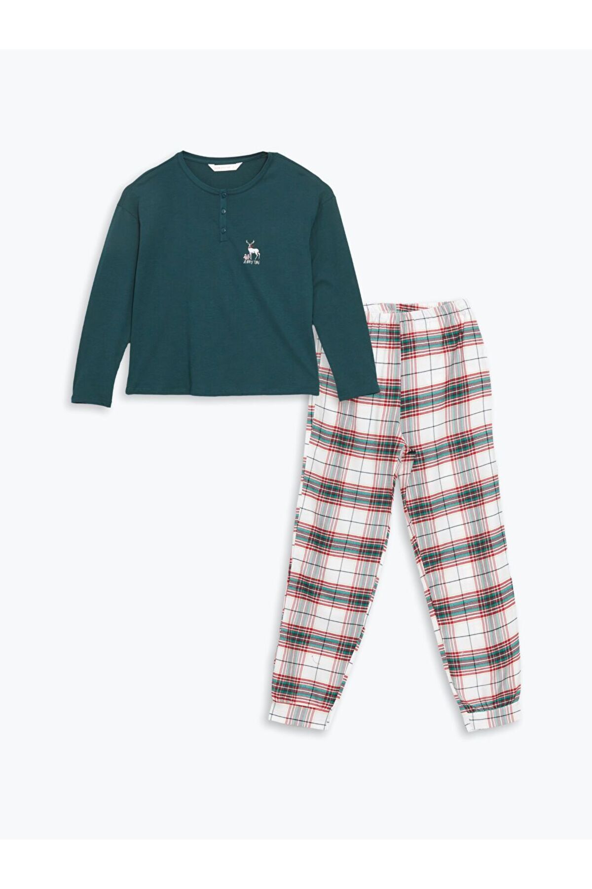 LC Waikiki Ekru Bisiklet Yaka Yılbaşı Temalı Kadın Pijama Takımı Özellikleri