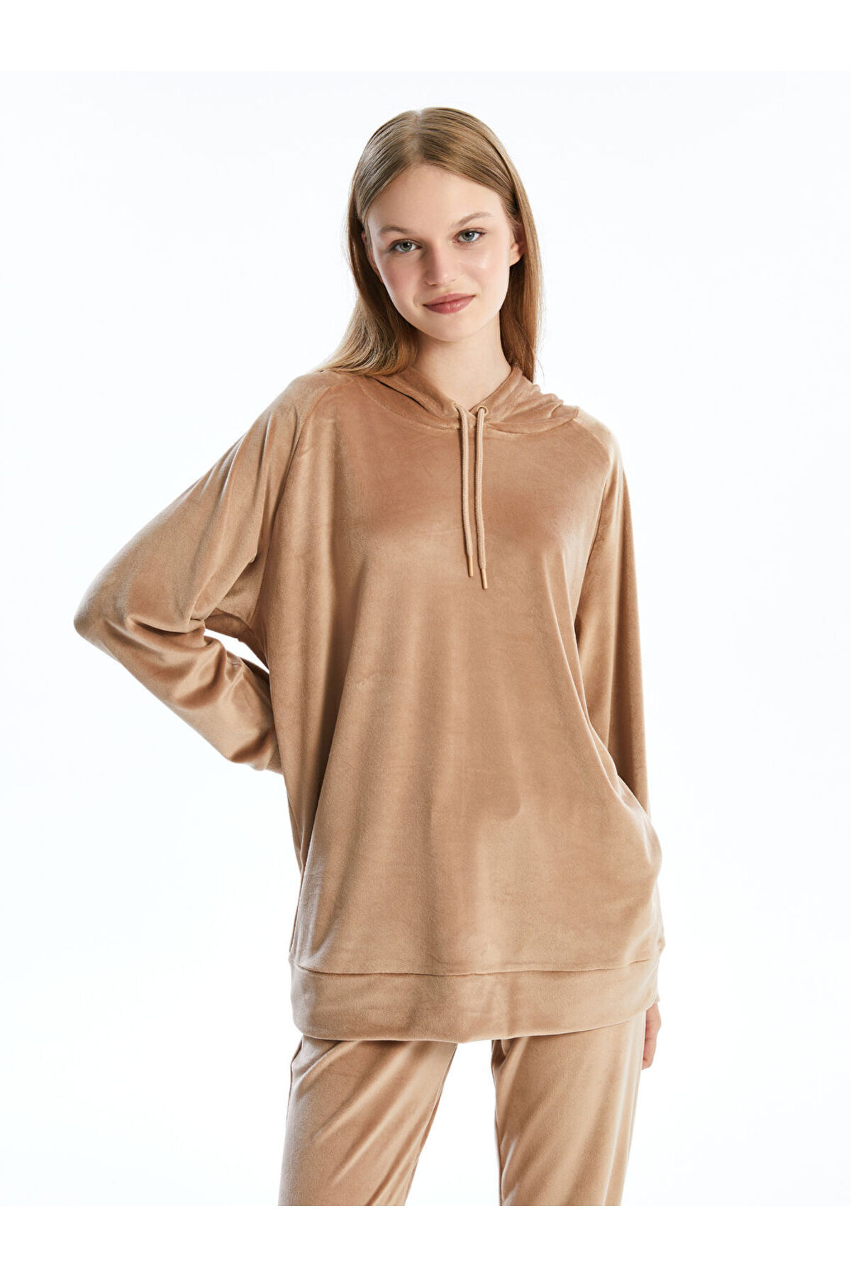 LC Waikiki Kapüşonlu Kadife Kadın Pijama Üst