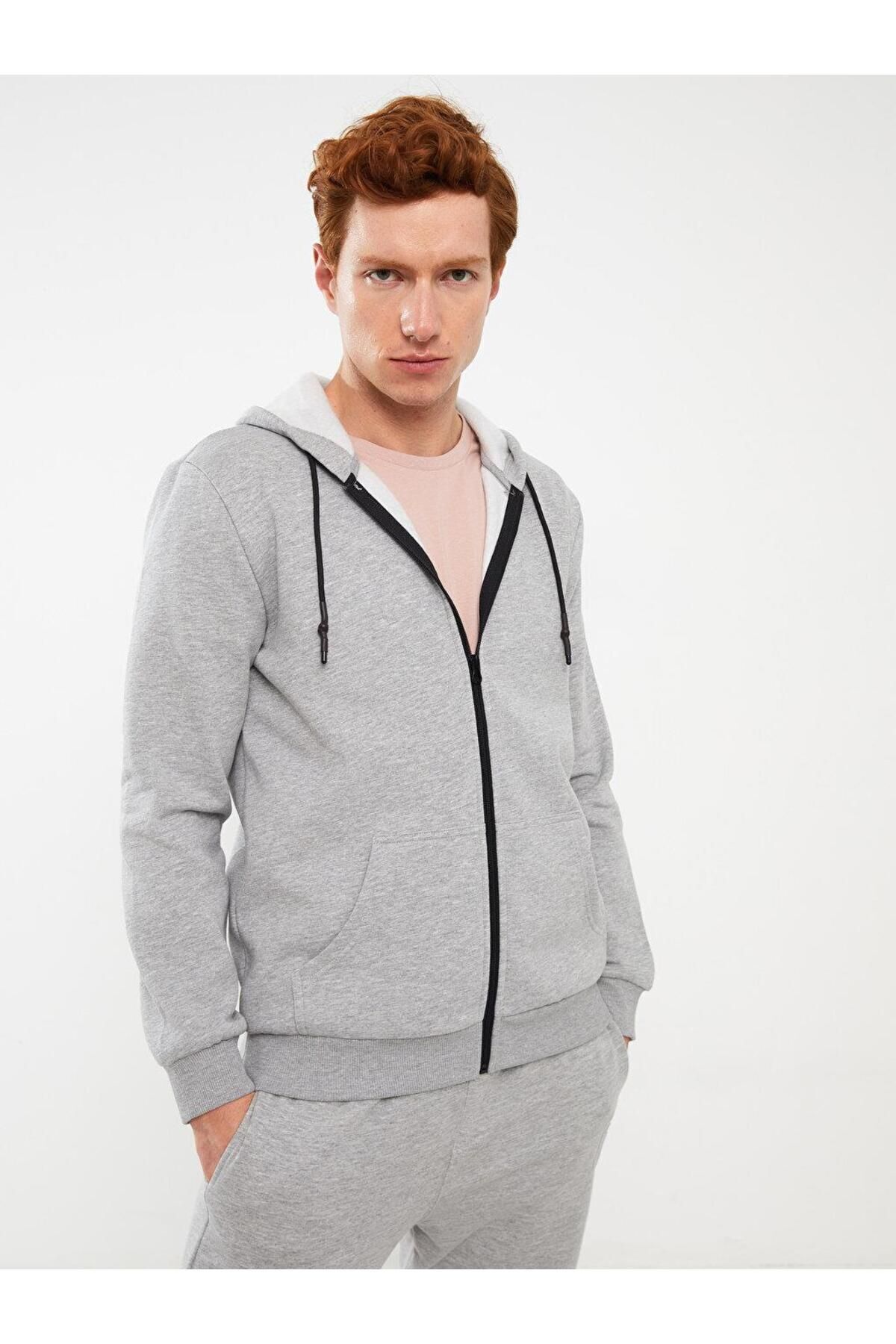 LC Waikiki Kapüşonlu Uzun Kollu Erkek Kalın Fermuarlı Sweatshirt (W3)