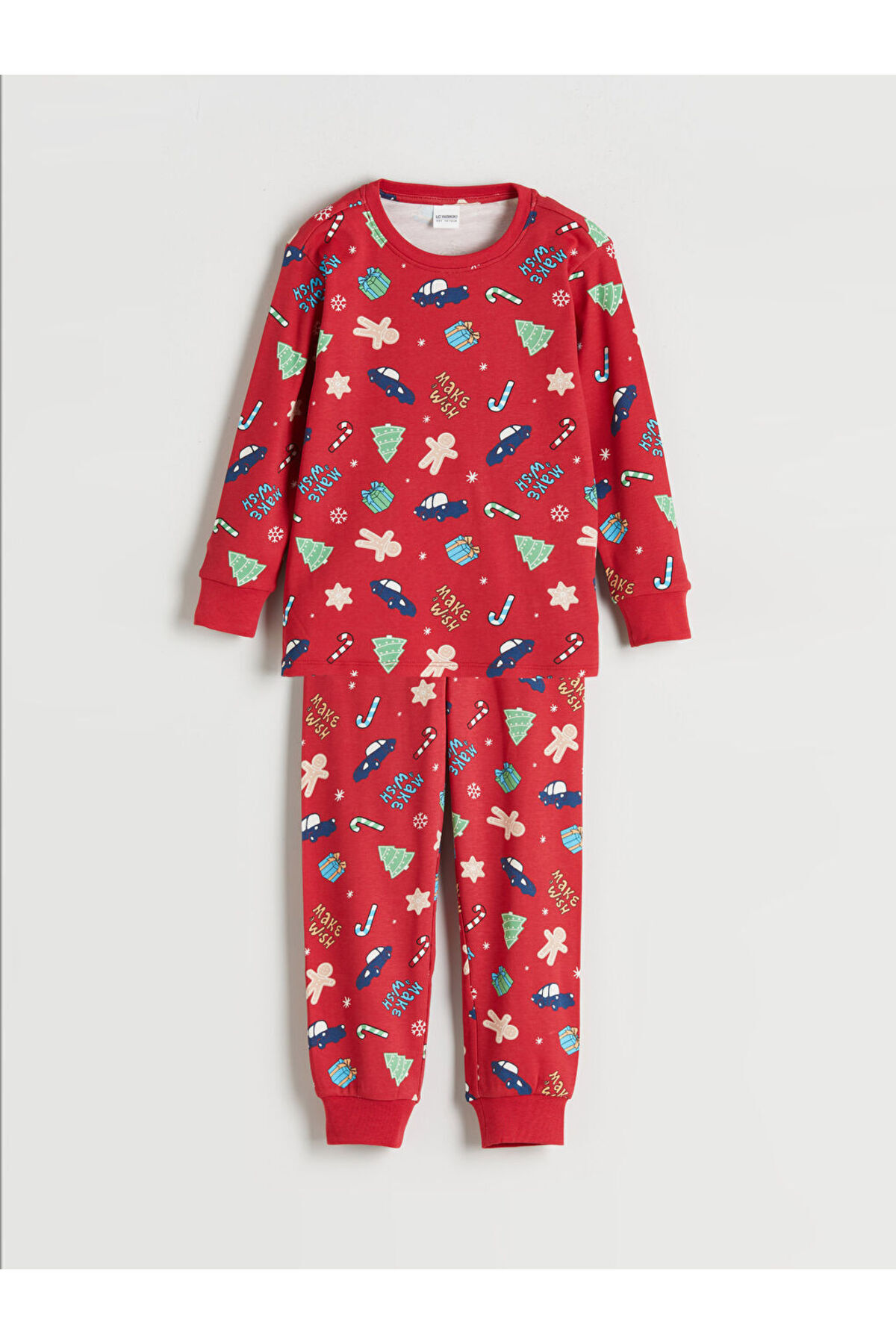 LC Waikiki Kırmızı Bisiklet Yaka Yılbaşı Temalı Erkek Çocuk Pijama Takımı