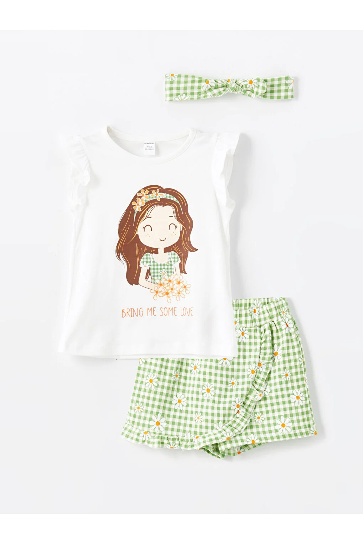 LC Waikiki LCW baby Bisiklet Yaka Kısa Kollu Baskılı Kız Bebek Tişört ve Şort Etek 2'li Takım Mrglobal