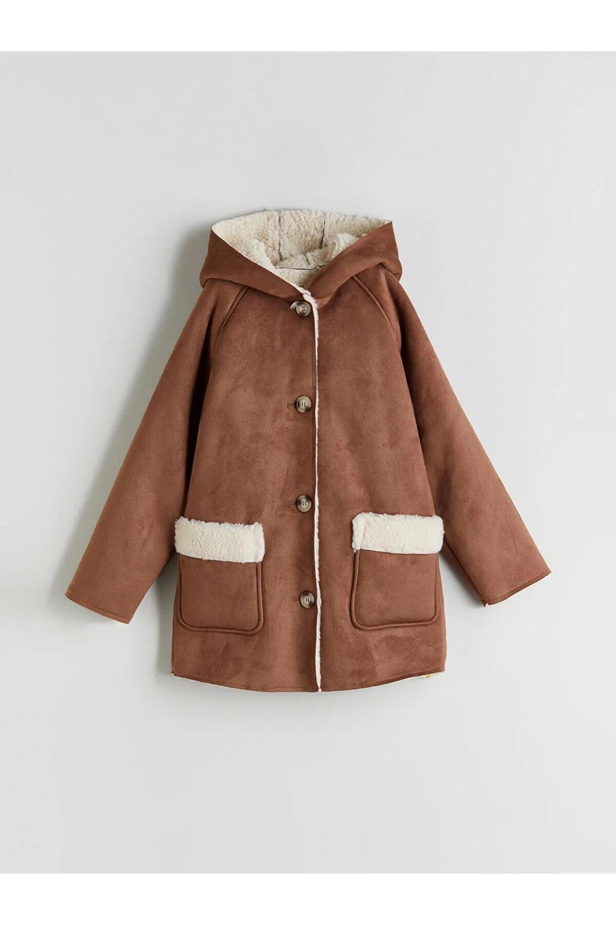LC Waikiki LCW Kids Kapüşonlu Süet Görünümlü Kız Çocuk Kaban (W5)