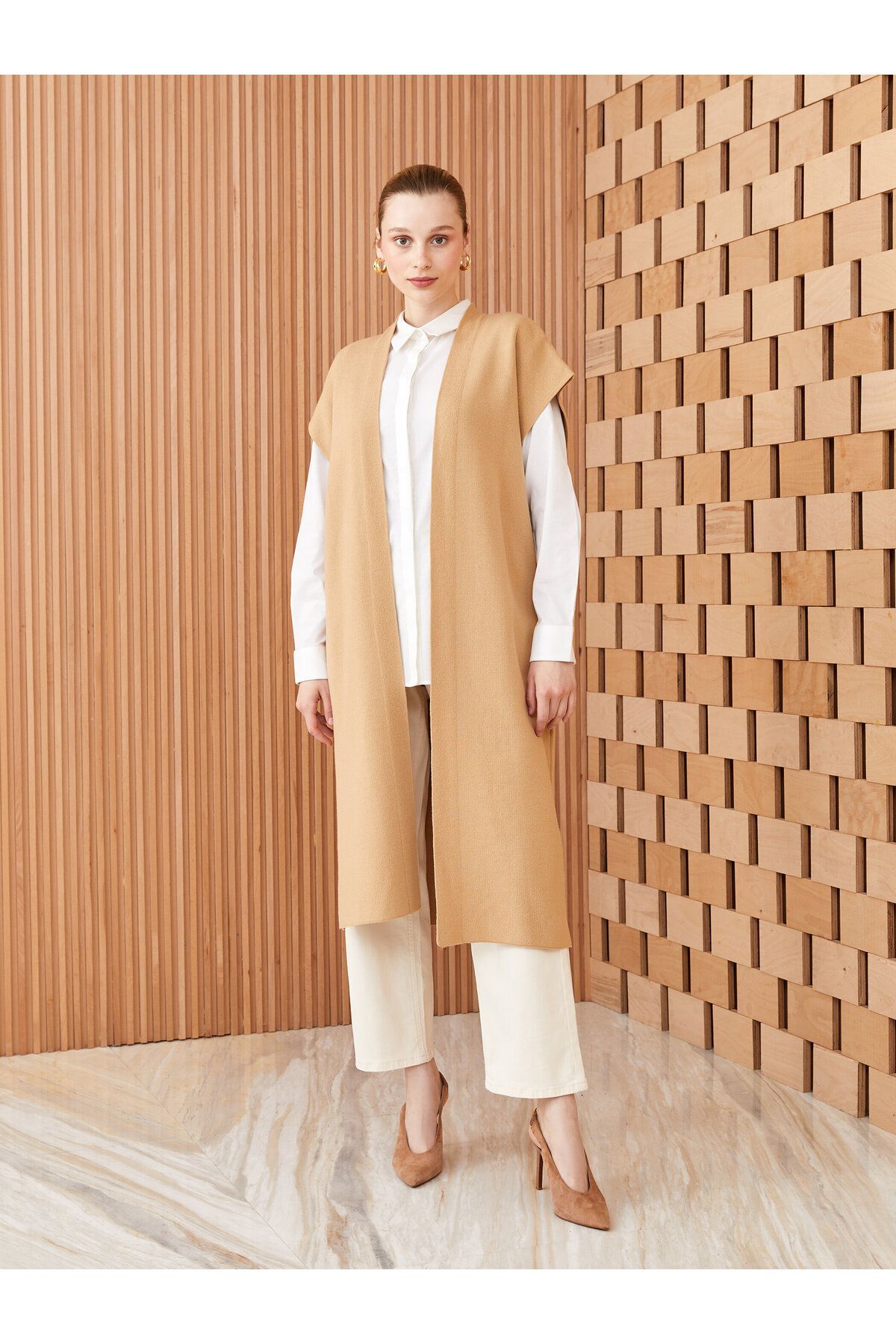 LC Waikiki LCW Modest Şal Yaka Düz Oversize Kadın Triko Yelek