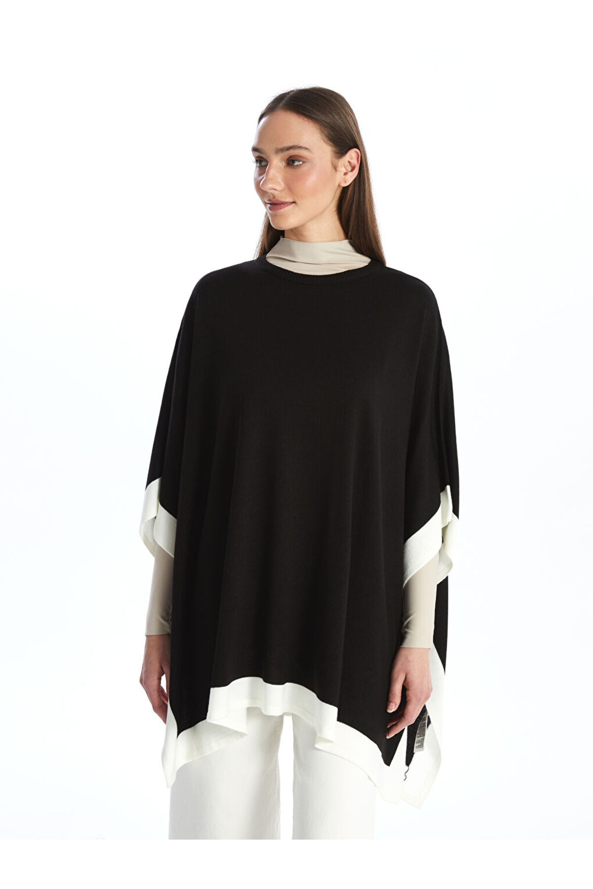 LC Waikiki LCW Modest Siyah Bisiklet Yaka Düz Oversize Kadın Triko Panço Özellikleri