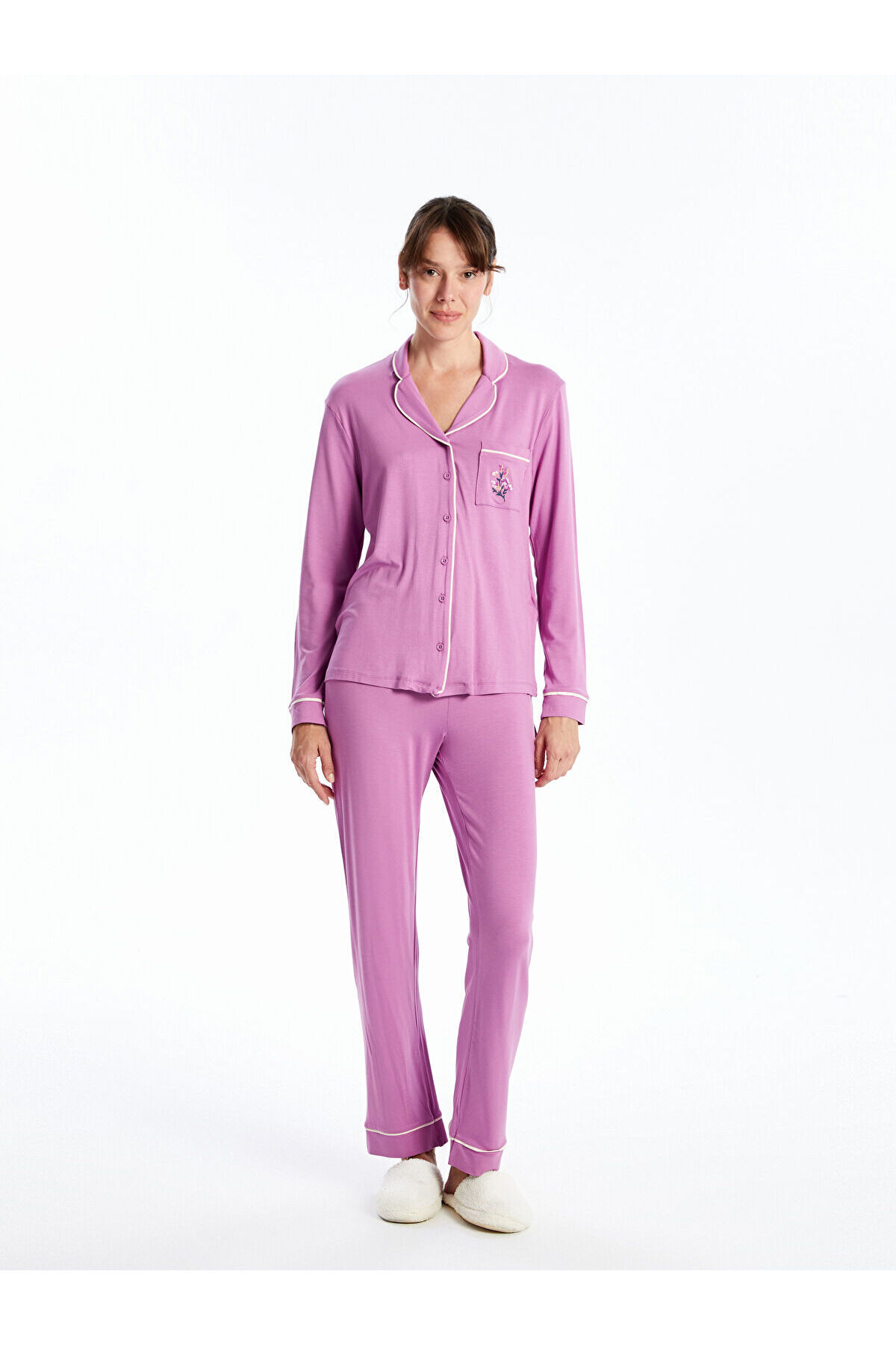 LC Waikiki Lcwk Gömlek Yaka Nakışlı Kadın Pijama Takımı