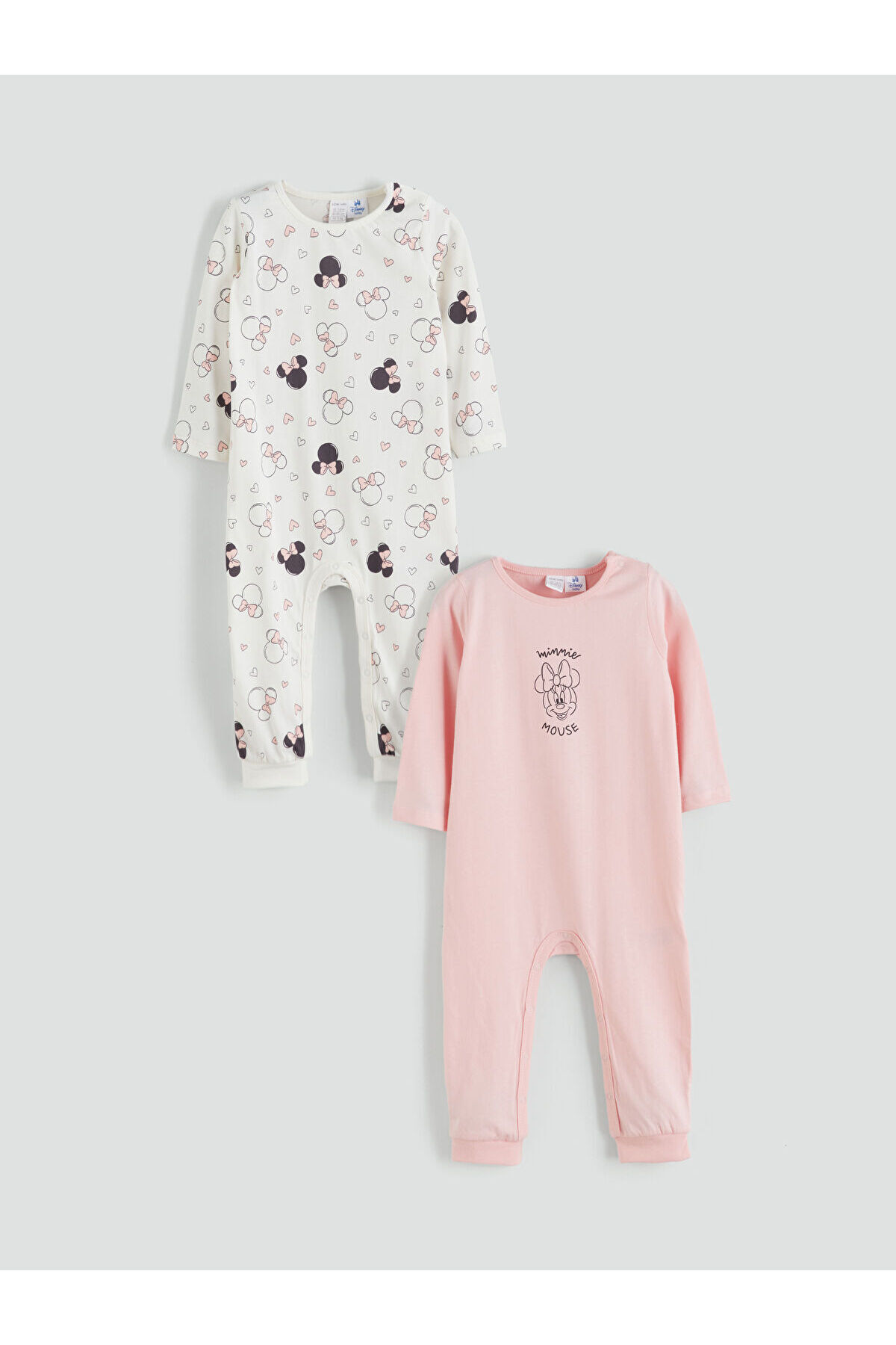 LC Waikiki Pembe Bisiklet Yaka Minnie Mouse Baskılı Kız Bebek Tulum 2'li