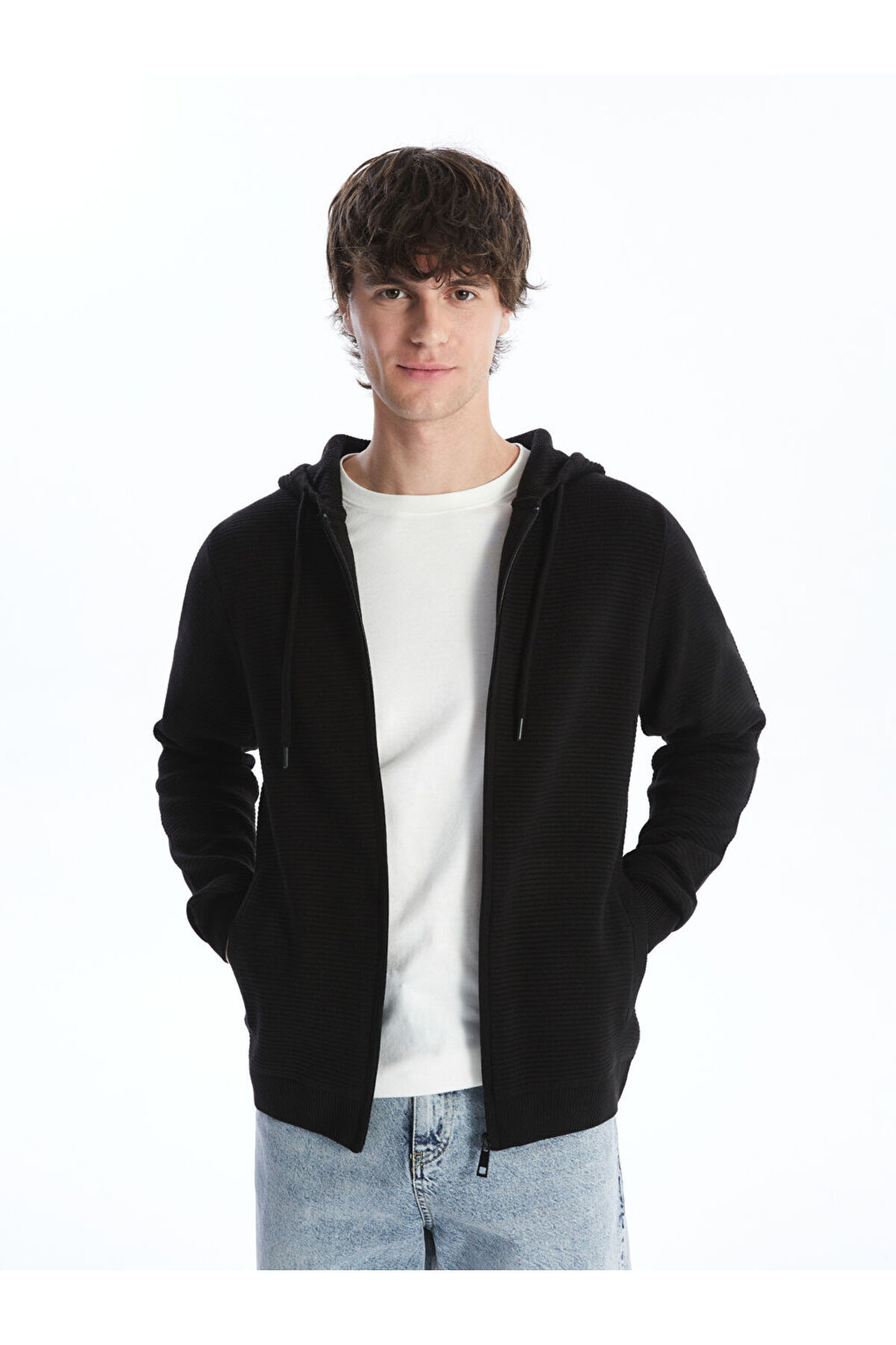 LC Waikiki Siyah Kapüşonlu Uzun Kollu Erkek Triko Hırka