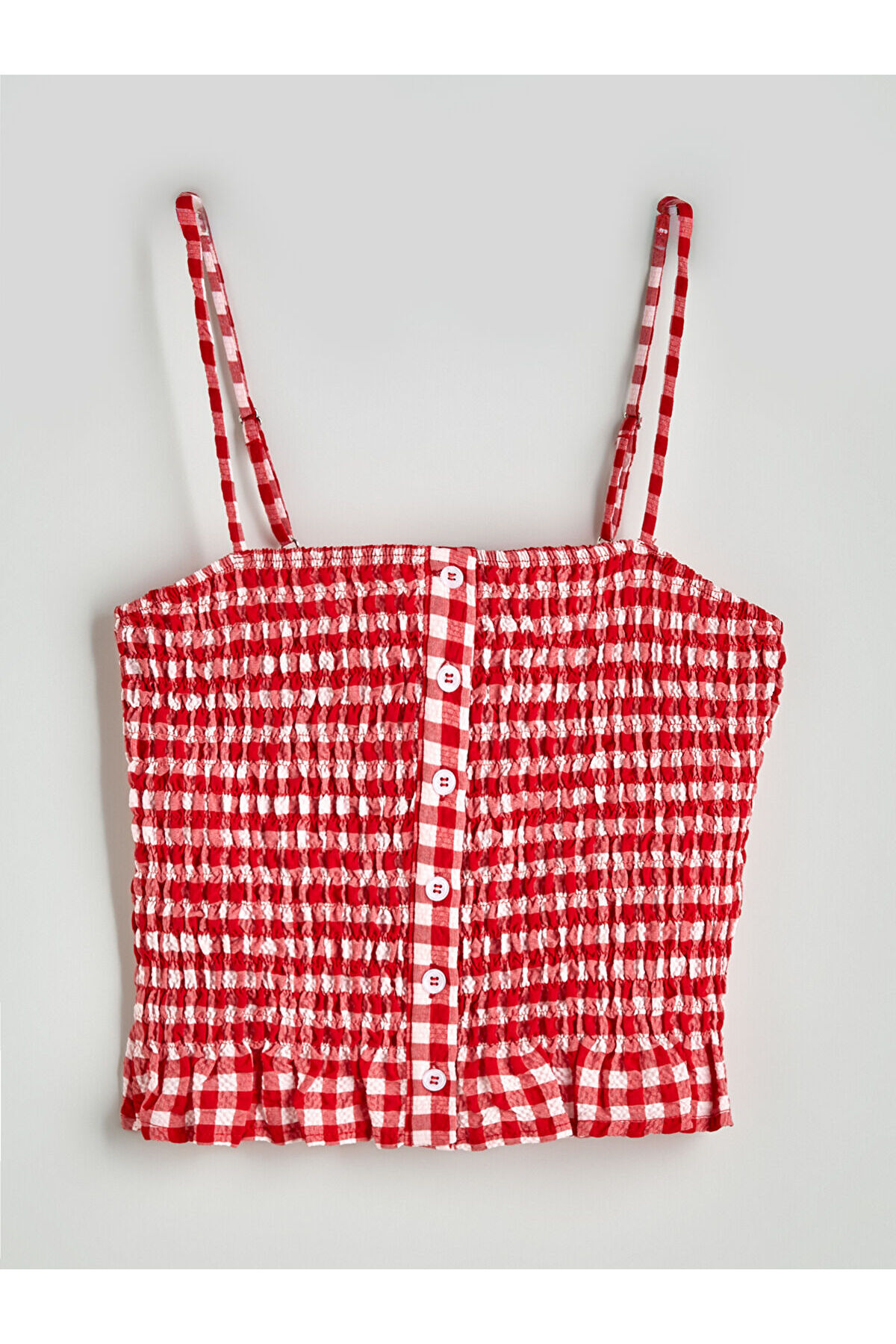 LC Waikiki XSIDE Kirmizi Kare Yaka Ekose Crop Bluz