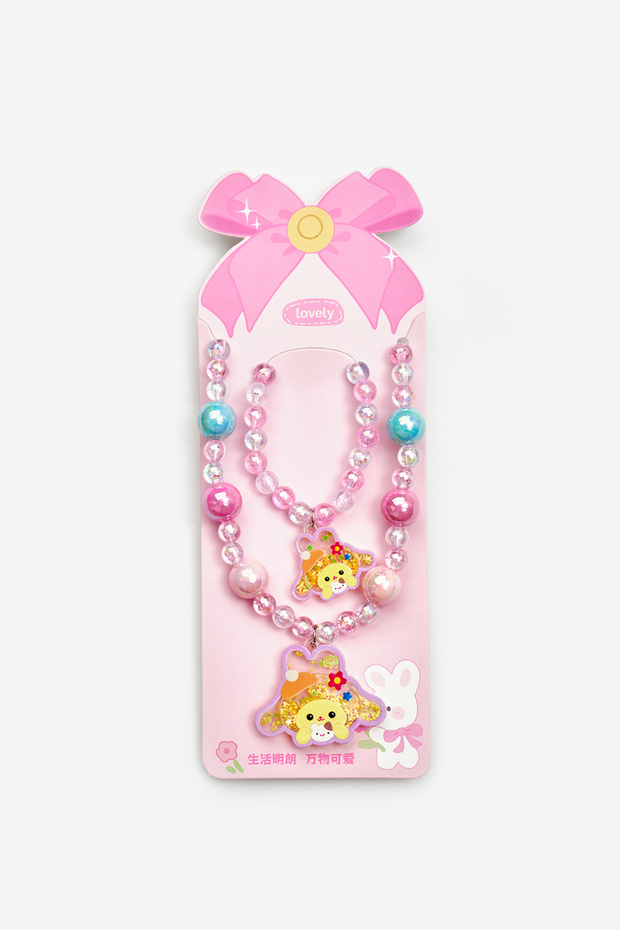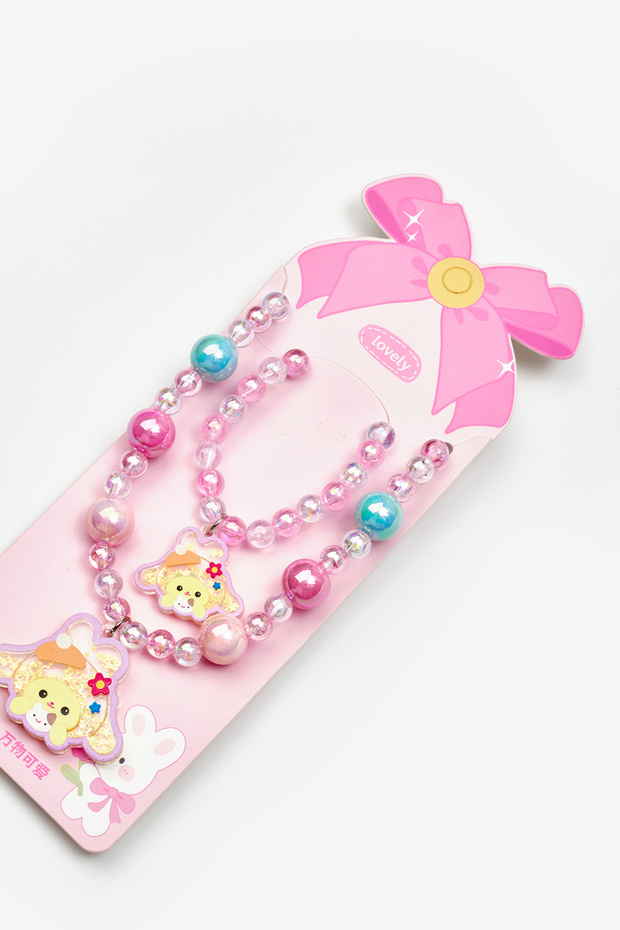 Le Mabelle Pembe Pompomourin Figürlü Kız Çocuk Kolye ve Bileklik Set