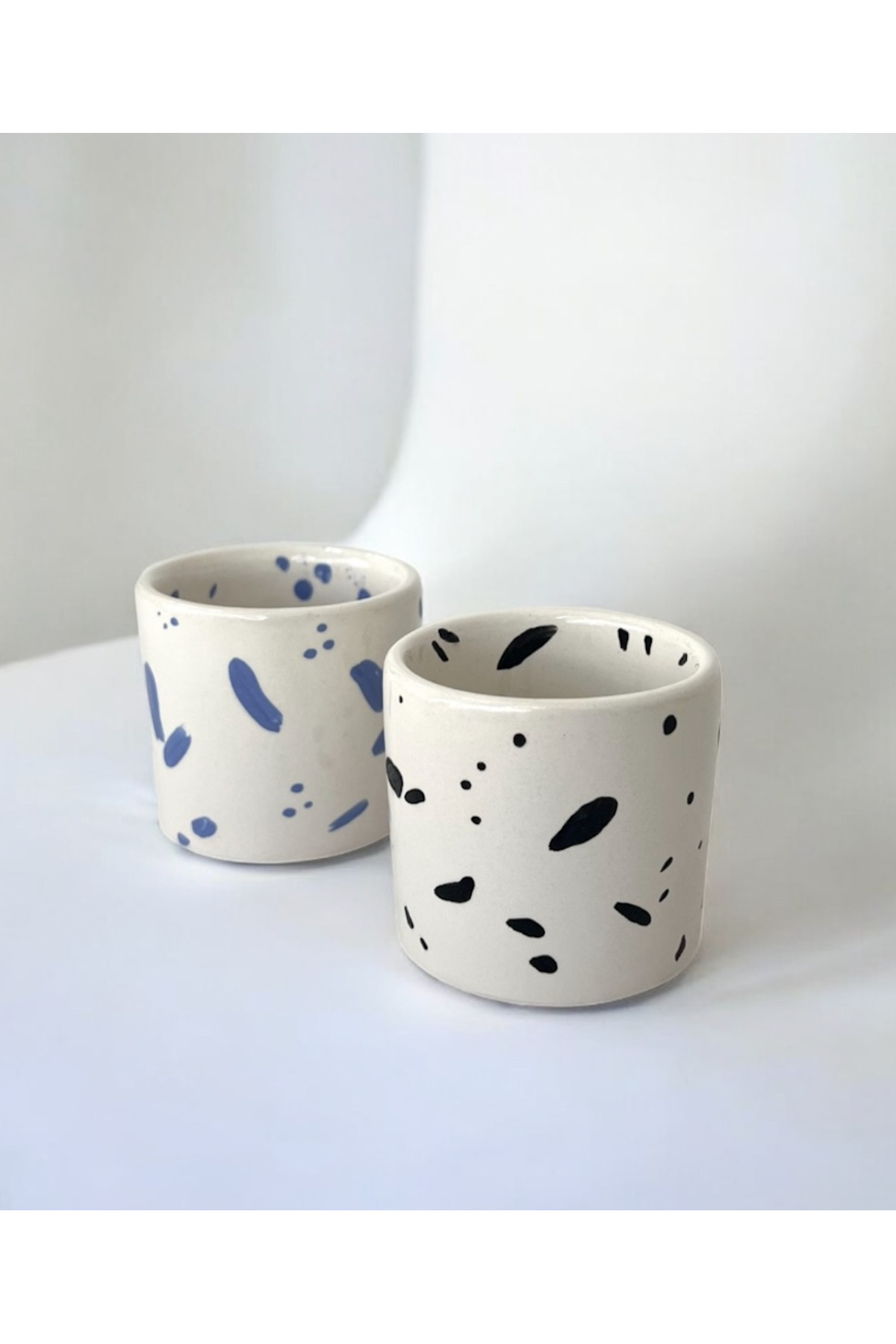LEADA PROJECT 2'li Mavi ve Siyah Benekli Espresso Türk Kahvesi Bardak Seti