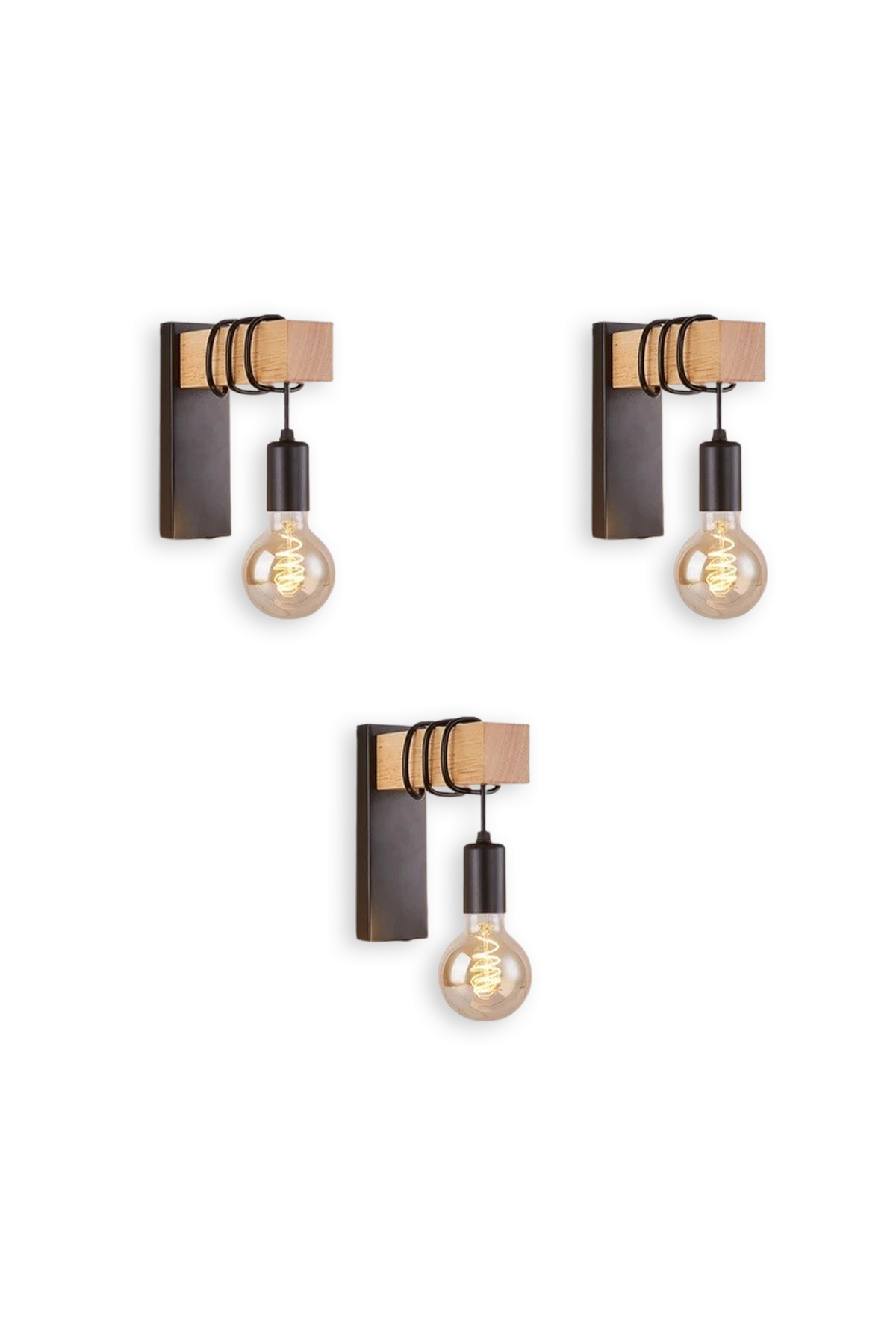 Led 3'lü Duvar retro Ahşap Siyah Tekli Duvar Lamba Aplik apliği dekoratif iç mekan aydınlatma Led E27 Özellikleri