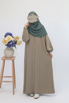 LemayeArya Ferace Tam Boy Fermuarlı Ferace - Taş