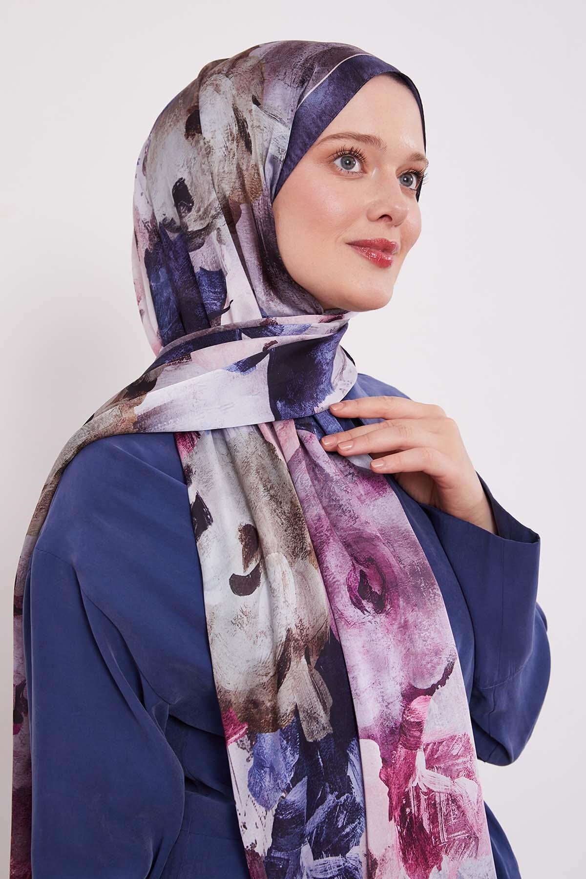 Levidor Lacivert Soyut Çiçek Desen Hint İpeği Şal Özellikleri