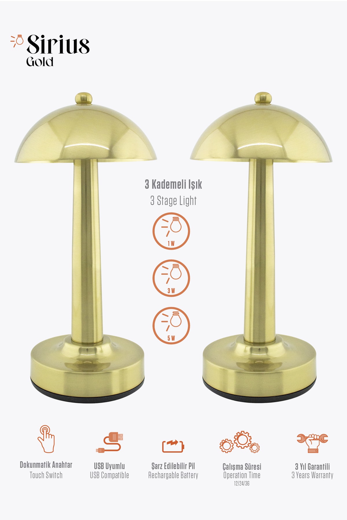 Light Design 2 Adet Gold Sirius Şarjlı, Pilli, Ledli, Dokunmatik Masa Lambası