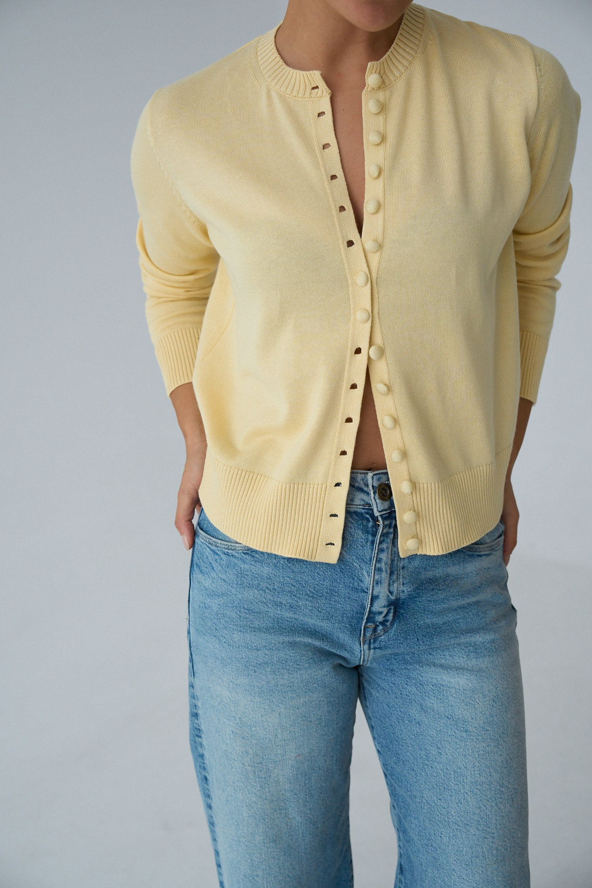 LOOSH Kadın Sarı Bisiklet Yaka Düğmeli Basic Hırka Özellikleri