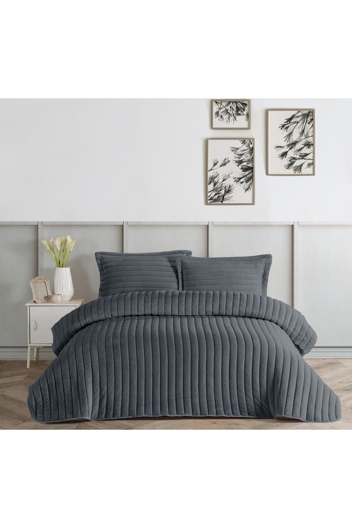 LORIENT HOME L'orıent Bonita Antrasit Gri Çift Kişilik Yatak Örtüsü Seti