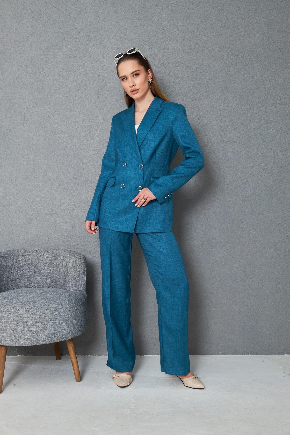 LOVELF 4 Düğmeli Kruvaze Yünefekt Takım Petrol